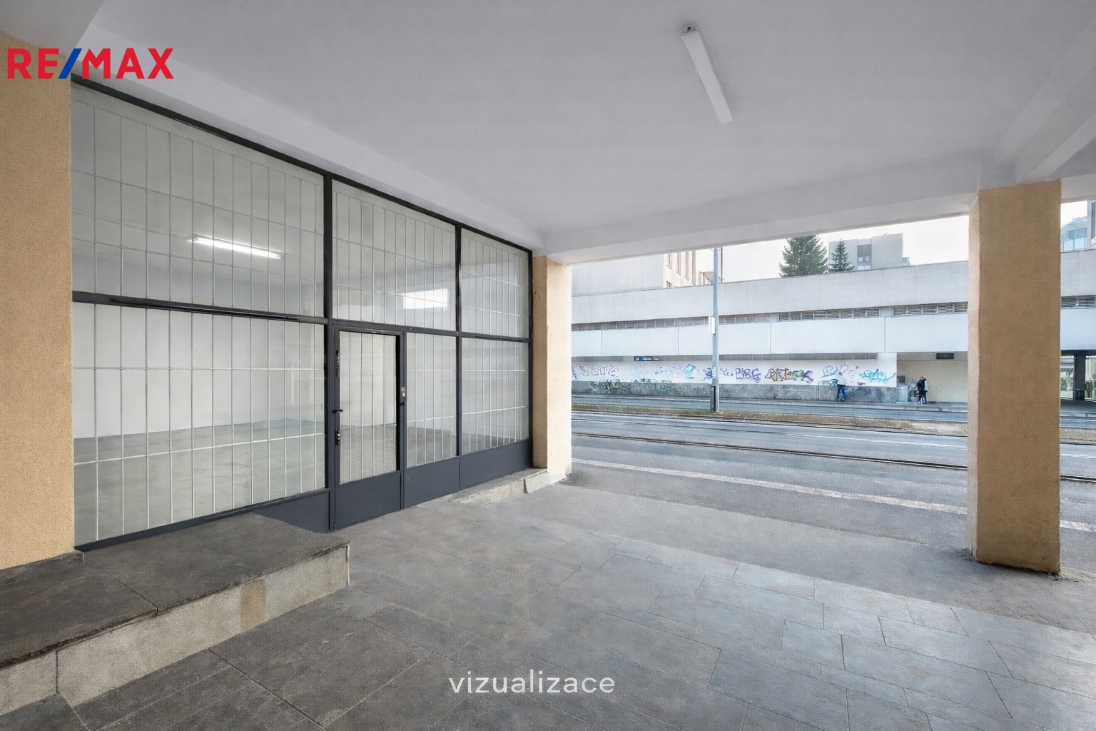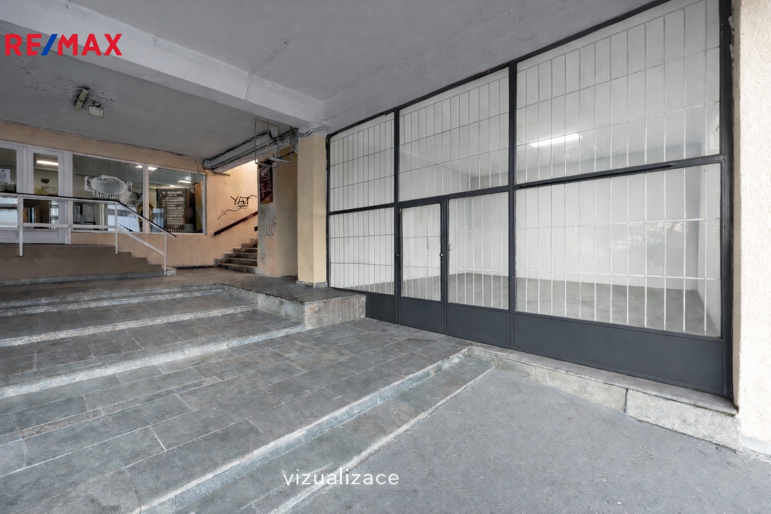 Prostor se nachází v přízemí cihlové budovy ve velmi dobrém technickém stavu, v centrální části rozsáhlého pražského sídliště, což zajišťuje vysokou frekvenci pohybu lidí, výbornou dostupnost a snadnou orientaci pro klienty. Velkou výhodou je vysoká viditelnost z frekventované hlavní ulice Hviezdoslavova, která nabízí skvělý potenciál pro oslovení široké klientely.