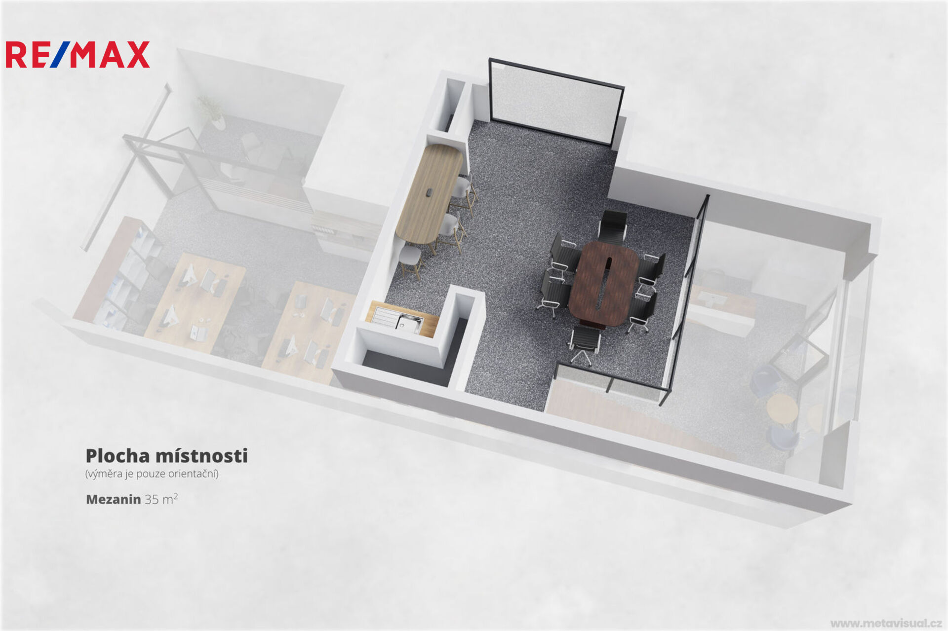 Obchodní prostor je v 1NP o velikosti 75m2 a MEZANIN o velikosti 35 m2.