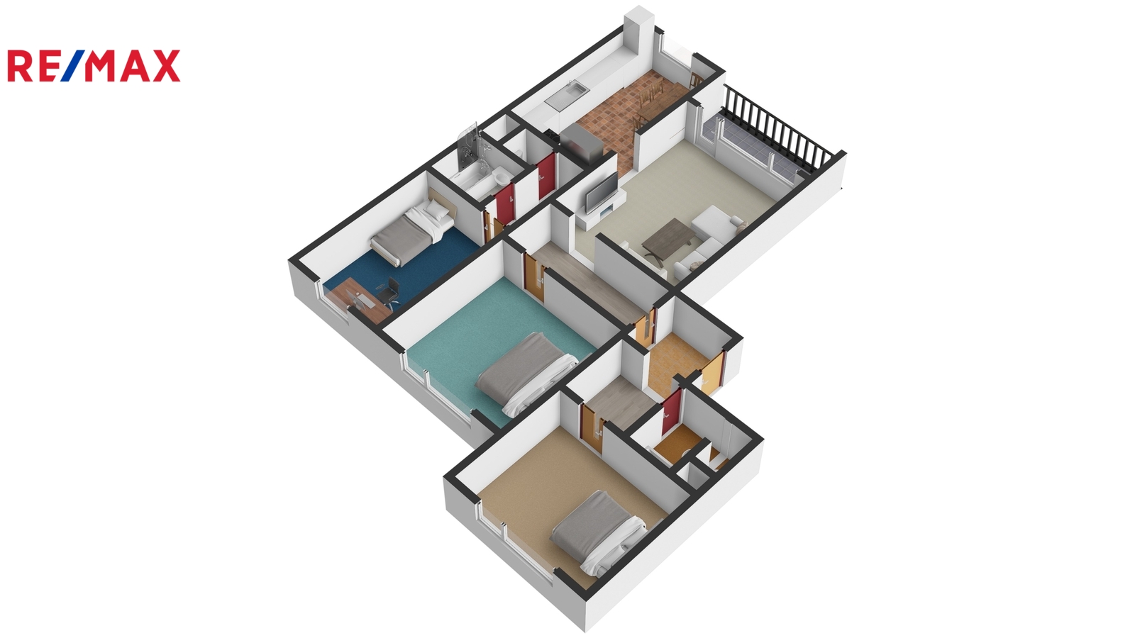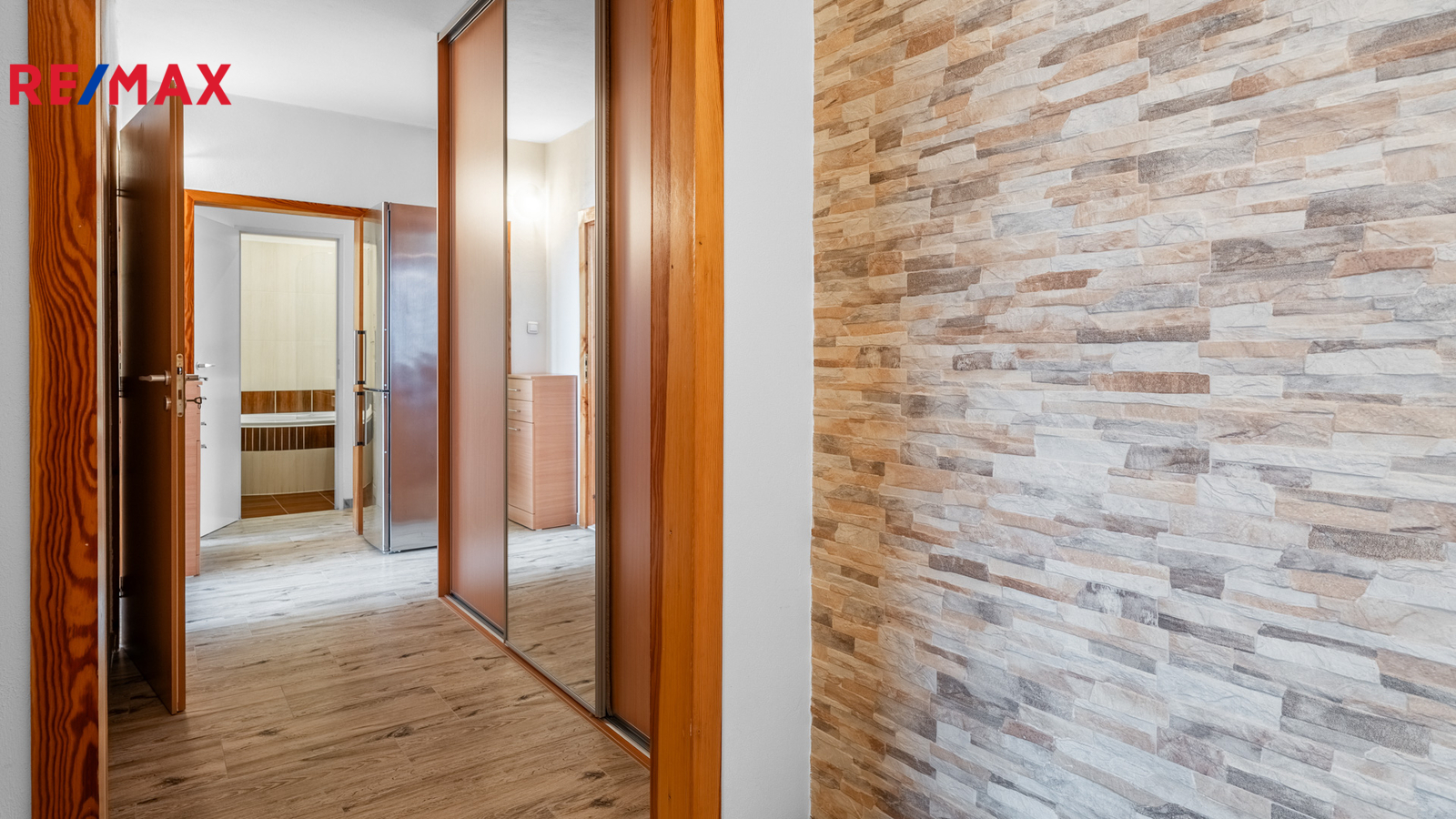Byt je v osobním vlastnictví, je v udržovaném stavu a jeho velkým benefitem jsou zděná jádra v obou koupelnách. Vstup do bytu zajišťují bezpečnostní a protihlukové dveře včetně zárubně, které přispívají k vyššímu komfortu bydlení. Za dveřmi je dlouhá vstupní chodba s vestavěnými skříněmi, takže úložné prostory jsou vyřešené hned od prvního kroku. V klidové části bytu se nachází ložnice a první sociální zázemí, které je prakticky řešené s prostorem pro pračku a sušičku. Dále jsou zde další dva samostatné pokoje, ideální jako dětské pokoje, pracovna nebo pokoj pro hosty.
