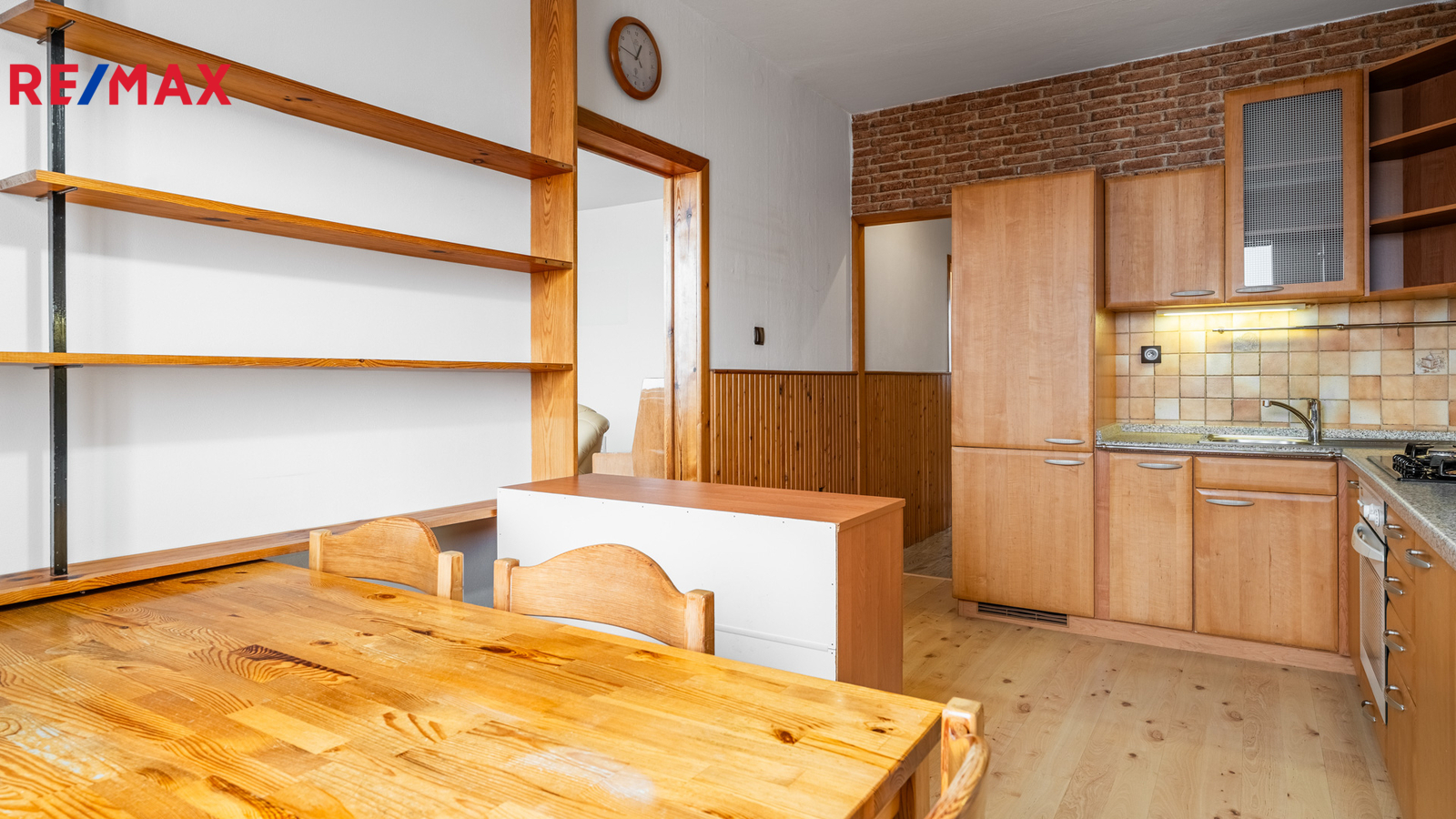 Kuchyně je samostatná s kuchyňskou linkou ve starším, ale velmi udržovaném a zcela funkčním provedení. Byt je tedy připravený k okamžitému užívání, případně nabízí prostor pro modernizaci podle vlastního vkusu. Z kuchyně se vstupuje do obývacího pokoje, ze kterého vejdete na lodžii s výhledem na celé město.