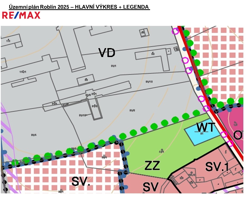 Přehled pozemku zapsaném v katastrálním území Roblín, Praha-západ, p.č. 61/2 o výměře 7004 m2 (po rozdělení bude k dispozici cca 2tis m2), druh pozemku ostatní plocha,