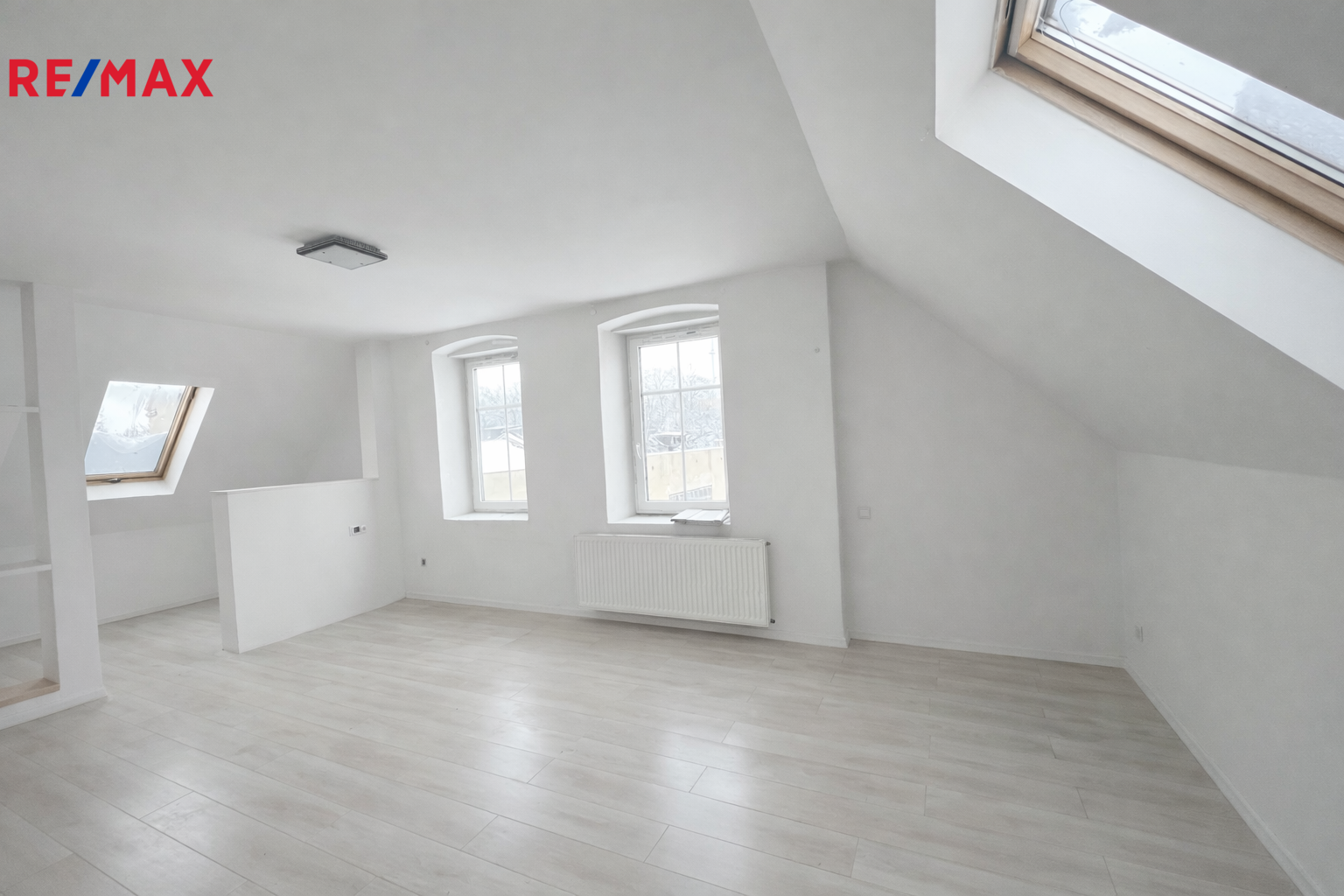 Součástí bytu je navíc část půdního prostoru, která slouží jako praktický sklad.