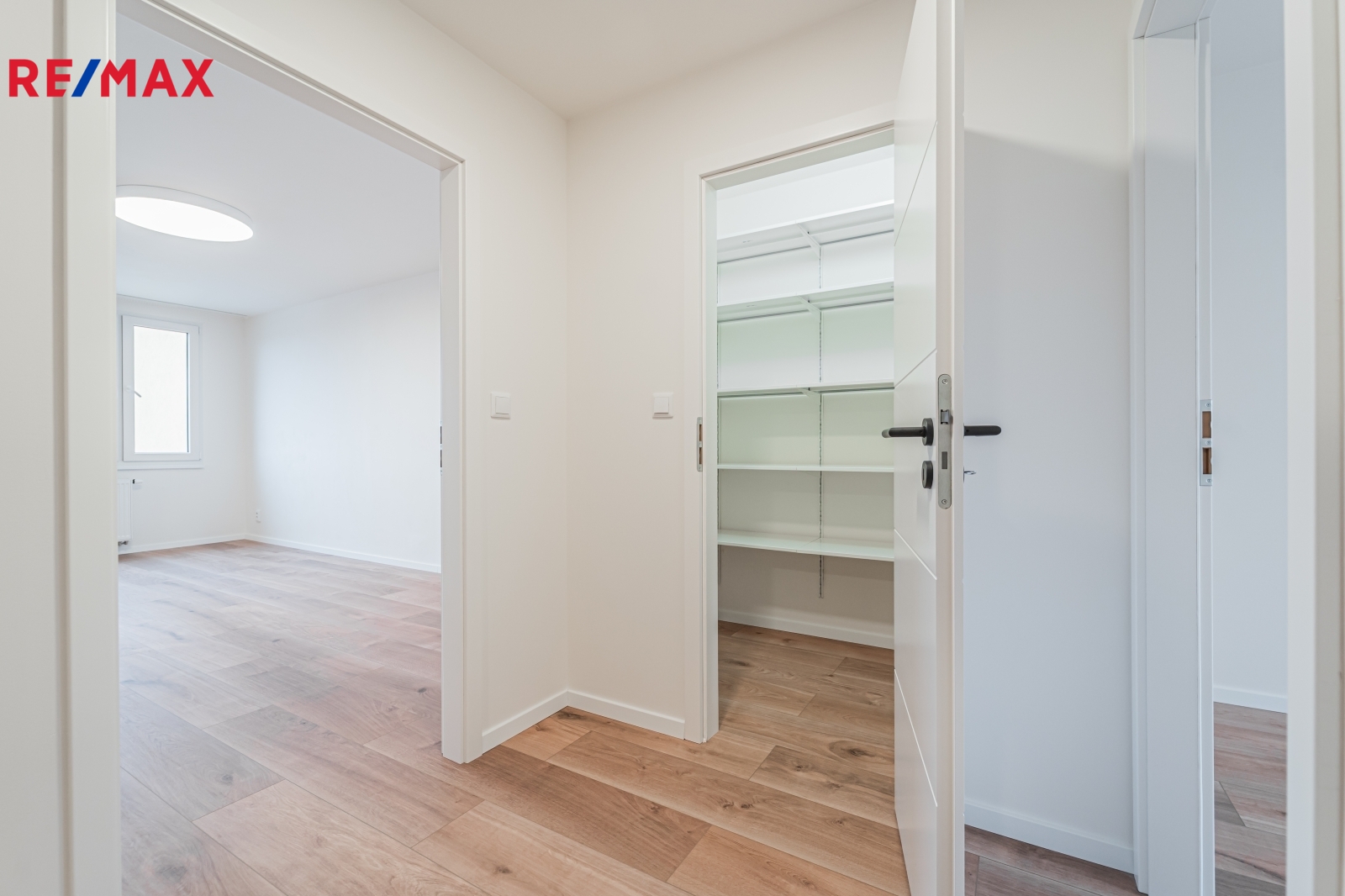 V celém bytě jsou nové vinylové podlahové krytiny, plastová okna s izolačními trojskly a předokenními žaluziemi. Moderní kuchyňská linka je vybavena vestavěnými spotřebiči. Velkou výhodou jsou dvě samostatné šatny s regálovým systémem, které perfektně řeší každodenní potřebu úložného prostoru.