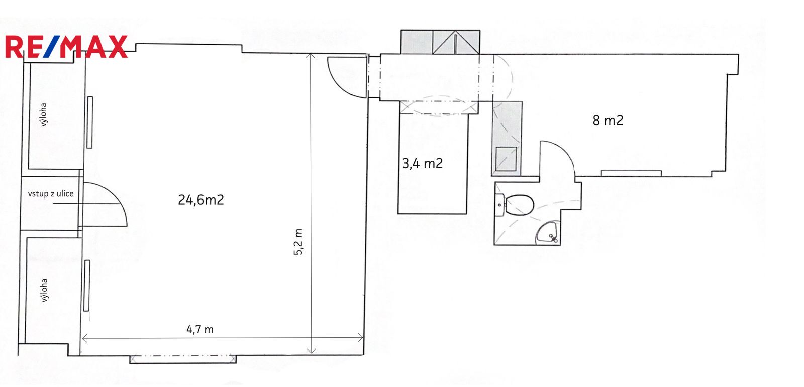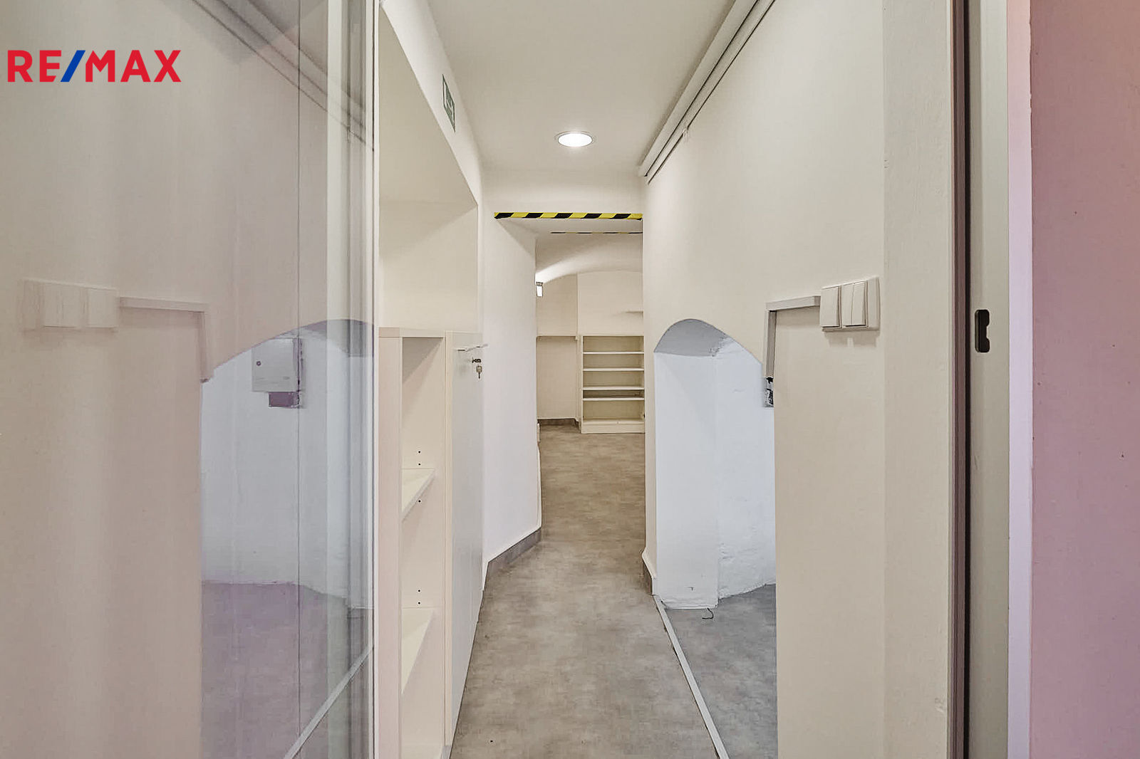 Prostory o ploše 38 m² mohou být využity jako optika, galerie, zlatnictví, kancelář (např. pobočka cestovní agentury nebo různých finančních/pojišťovacích společností) či jako prodejna se zdravotnickými potřebami (díky umístění polikliniky ve stejné ulici). Prostory sestávají ze vstupní místnosti, na kterou navazuje menší prostor/technické nebo skladové zázemí a další místnost v podobě zázemí pro zaměstnance či klienty a toaleta s umyvadlem. Úprava interiéru je možná po dohodě s majiteli domu. Dvě výlohy a přístup z ulice skýtají atraktivní příležitost a velmi široké komerční využití.