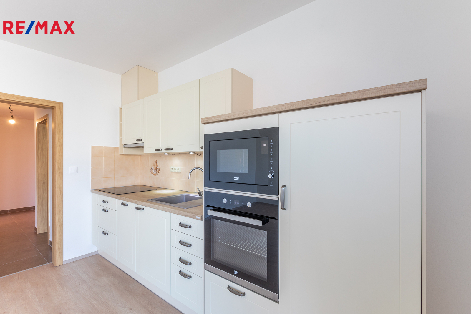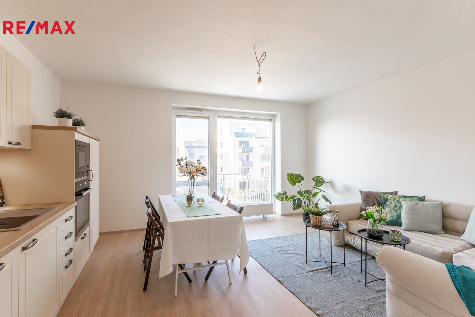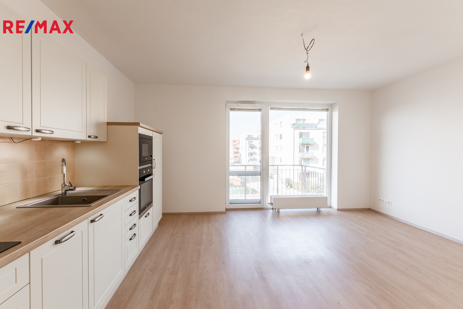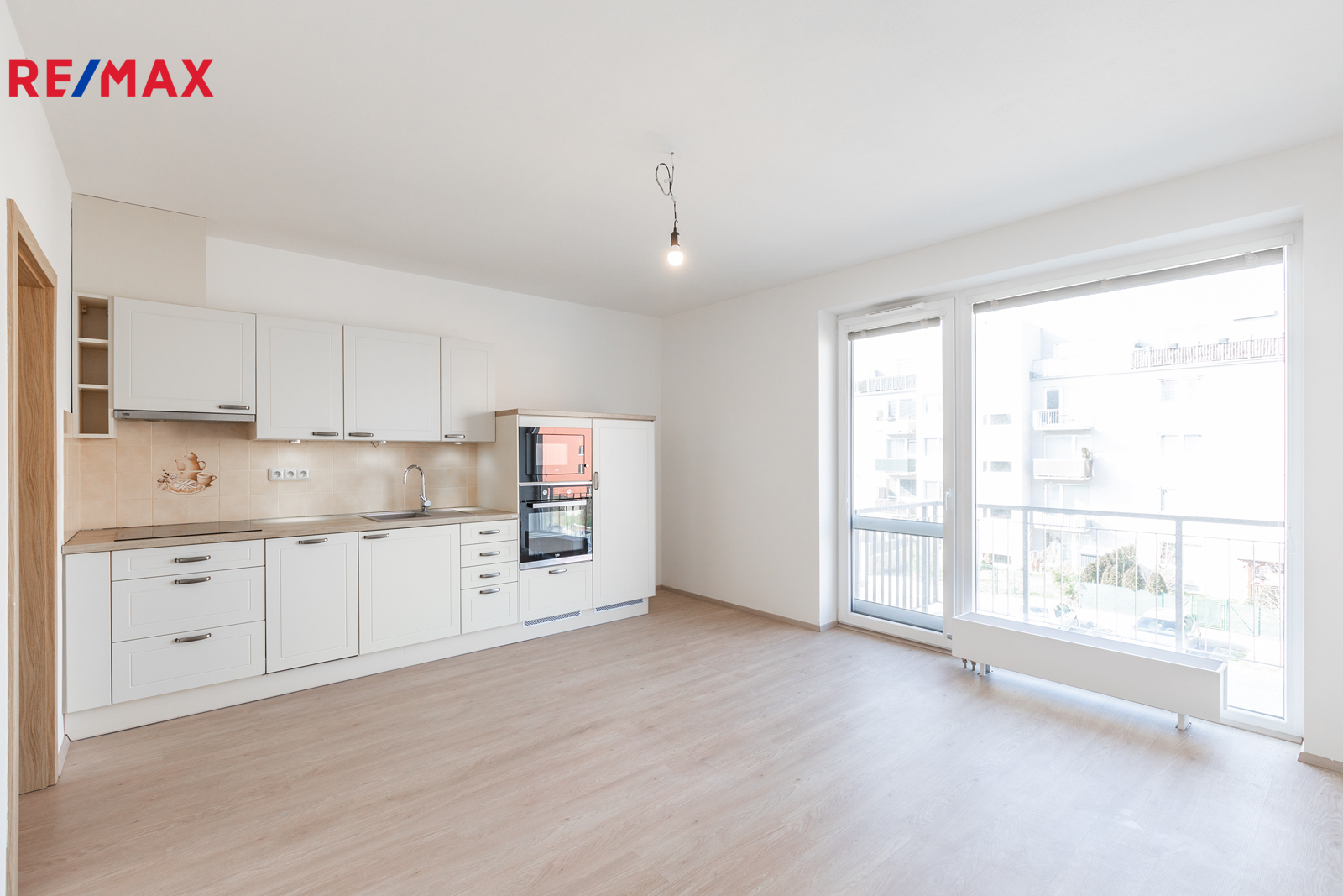 Dispoziční řešení 2+kk nabízí chodbu, ložnici, koupelnu s vanou a WC a obývací pokoj s balkonem, orientovaným do klidné ulice v rámci areálu developerského projektu. Kuchyně je vybavena všemi spotřebiči včetně lednice, v ložnici se nachází praktická vestavěná šatní skříň. Pozn.: Jinak je byt nabízen bez vybavení, to na fotografiích slouží pouze jako ilustrační pro lepší představu o prostoru.