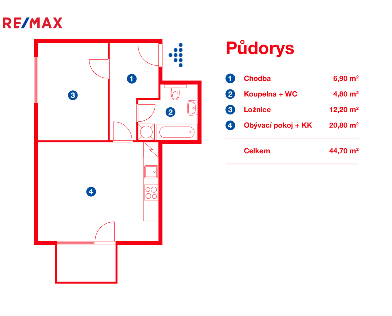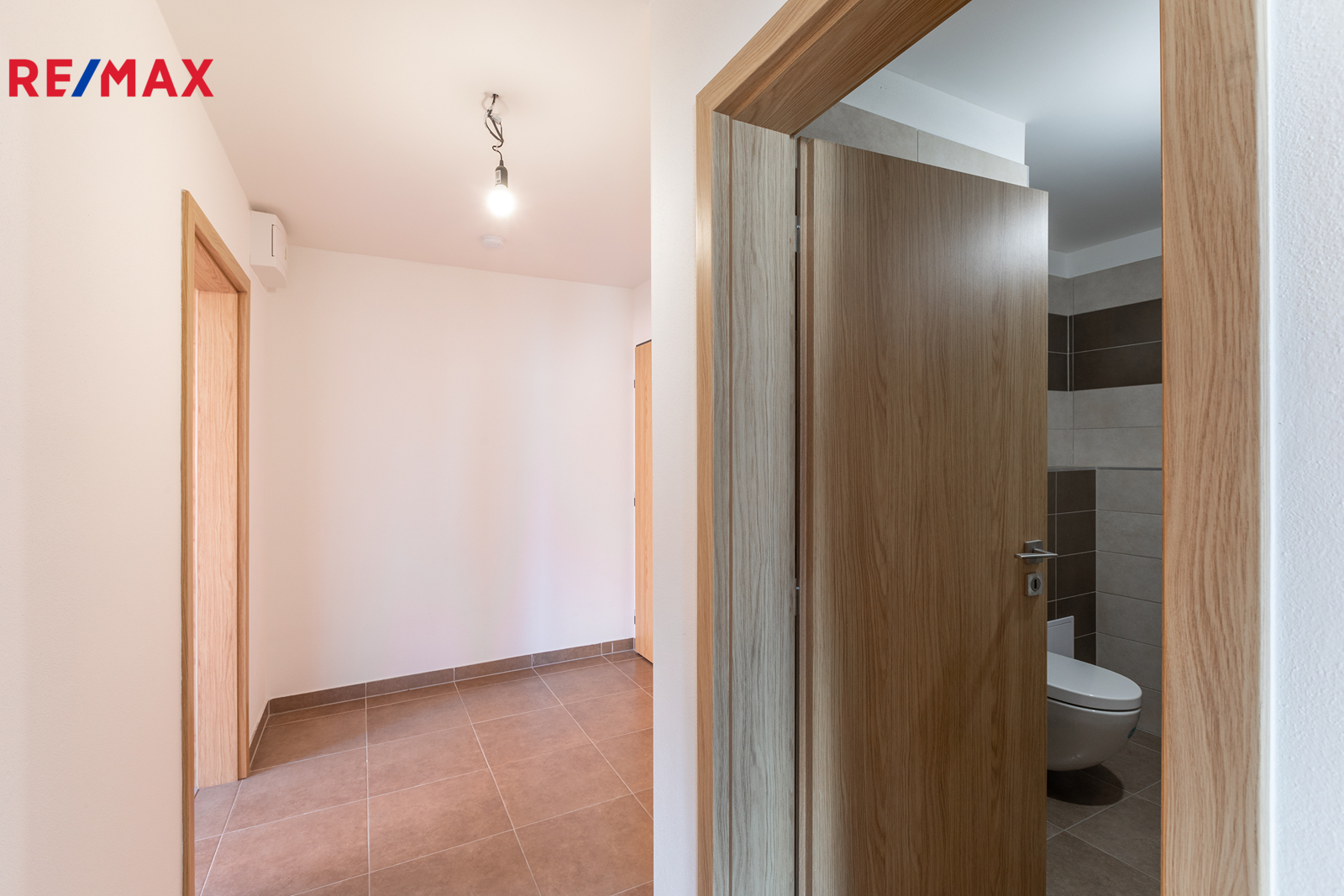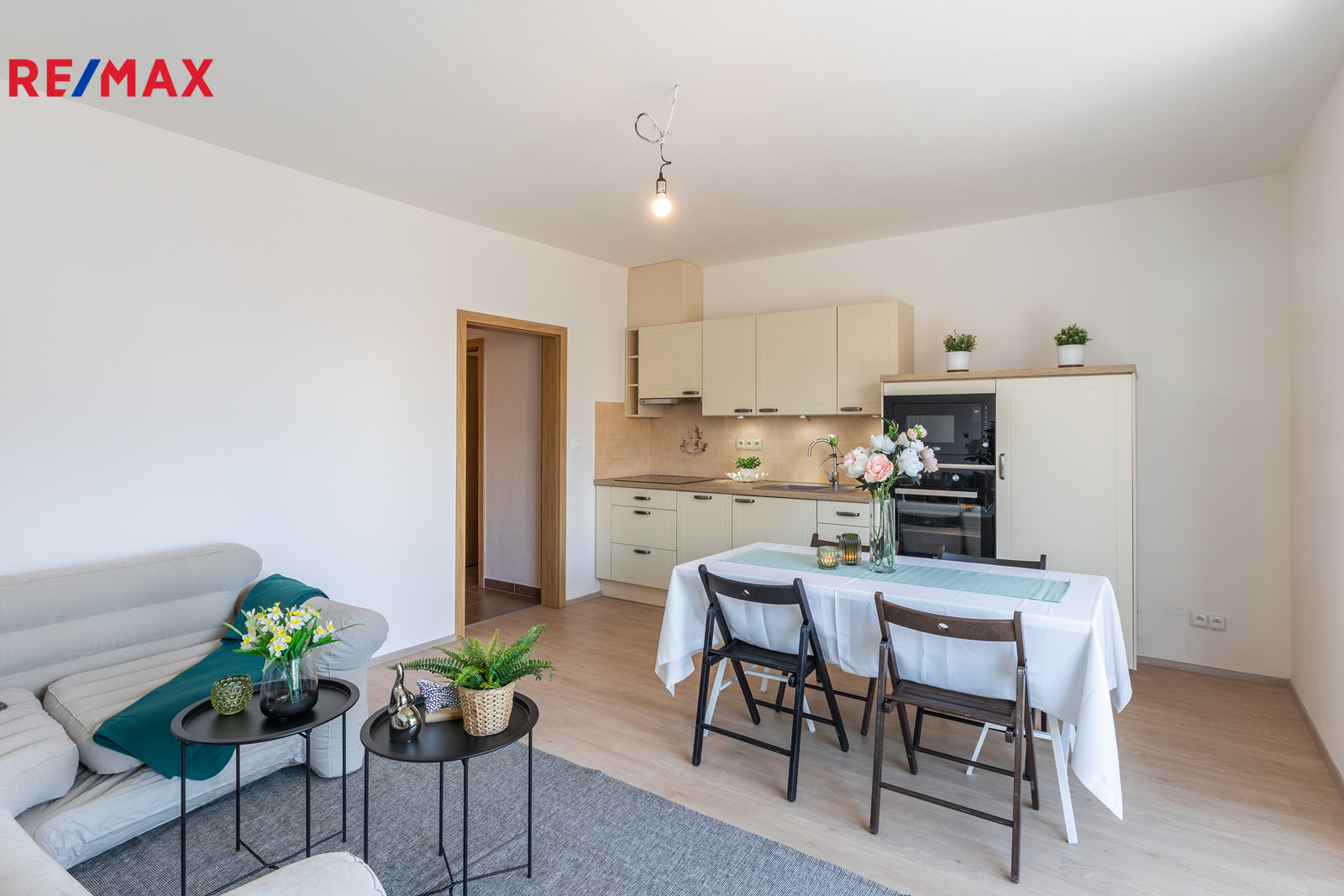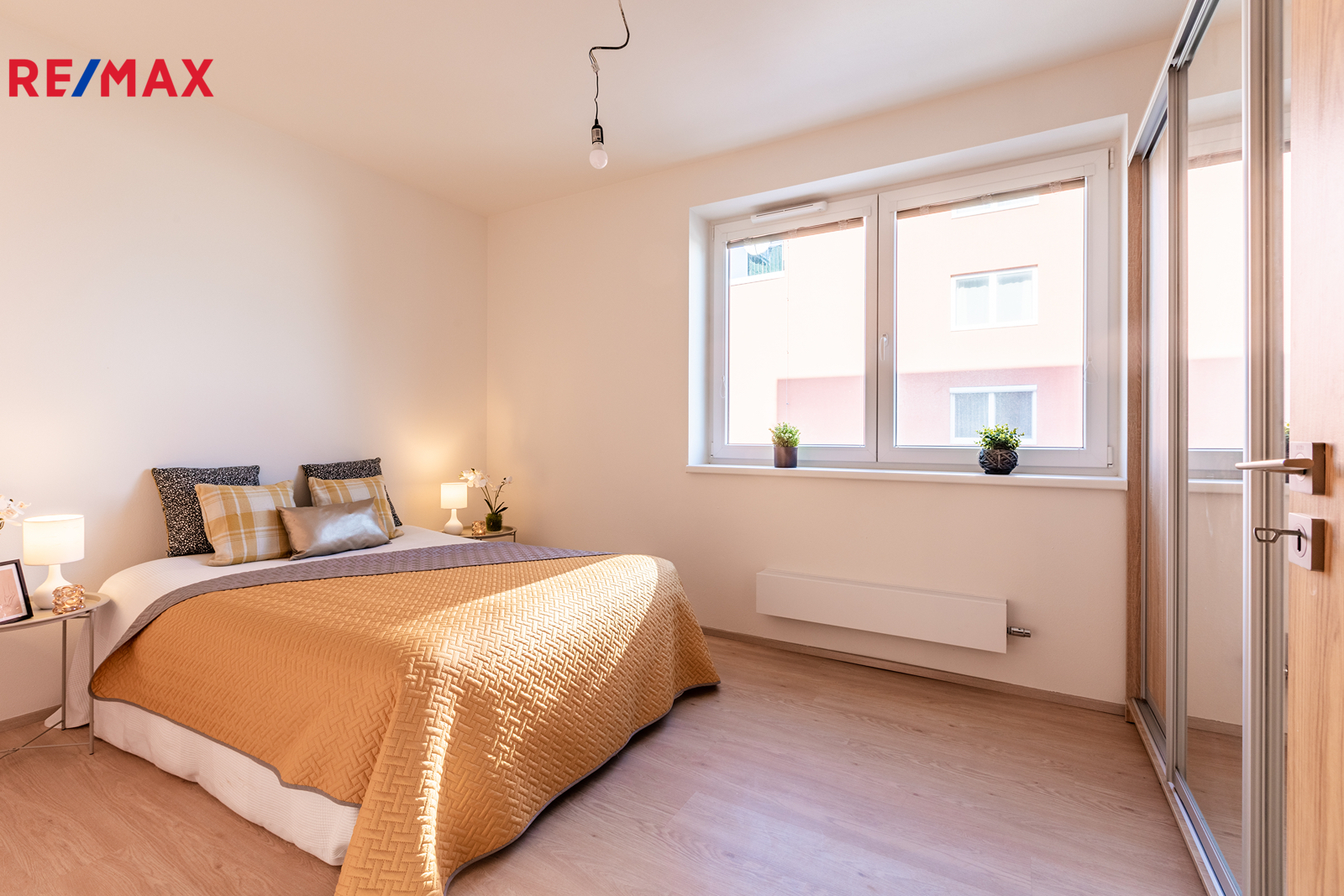 Dispoziční řešení 2+kk nabízí chodbu, ložnici, koupelnu s vanou a WC a obývací pokoj s balkonem, orientovaným do klidné ulice v rámci areálu developerského projektu. Kuchyně je vybavena všemi spotřebiči včetně lednice, v ložnici se nachází praktická vestavěná šatní skříň. Pozn.: Jinak je byt nabízen bez vybavení, to na fotografiích slouží pouze jako ilustrační pro lepší představu o prostoru.