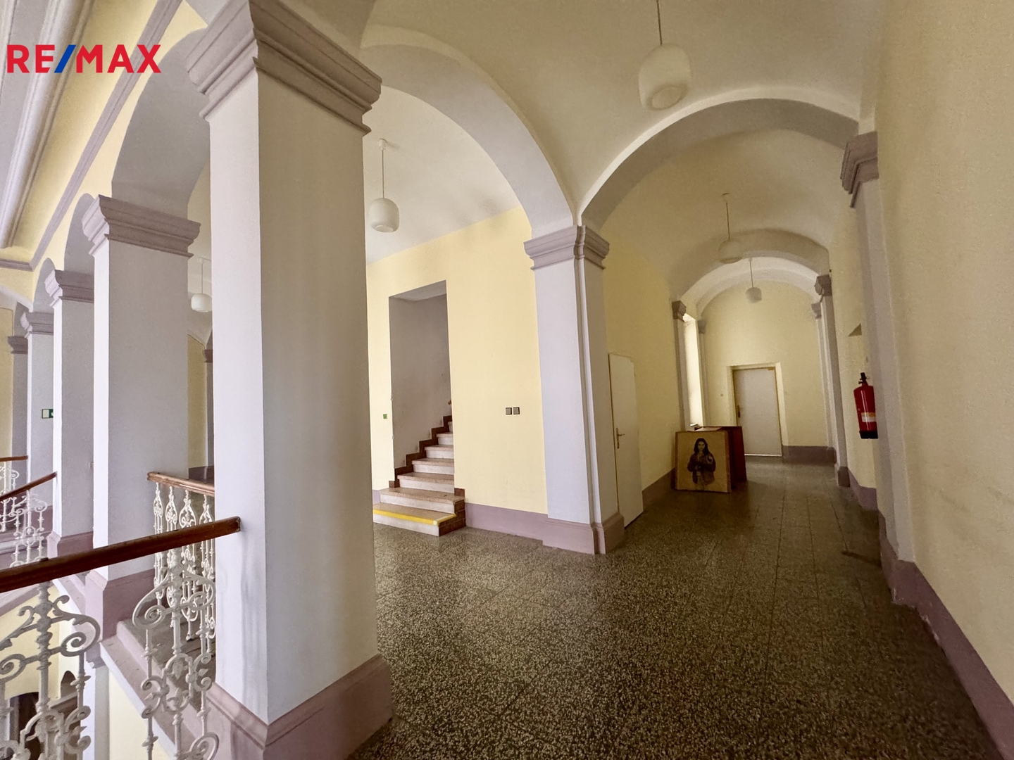 Dominantou budovy je prostorná chodba s původním zábradlím a klenuté stropy na chodbách, které podtrhují historický charakter objektu. V budově je k dispozici výtah.