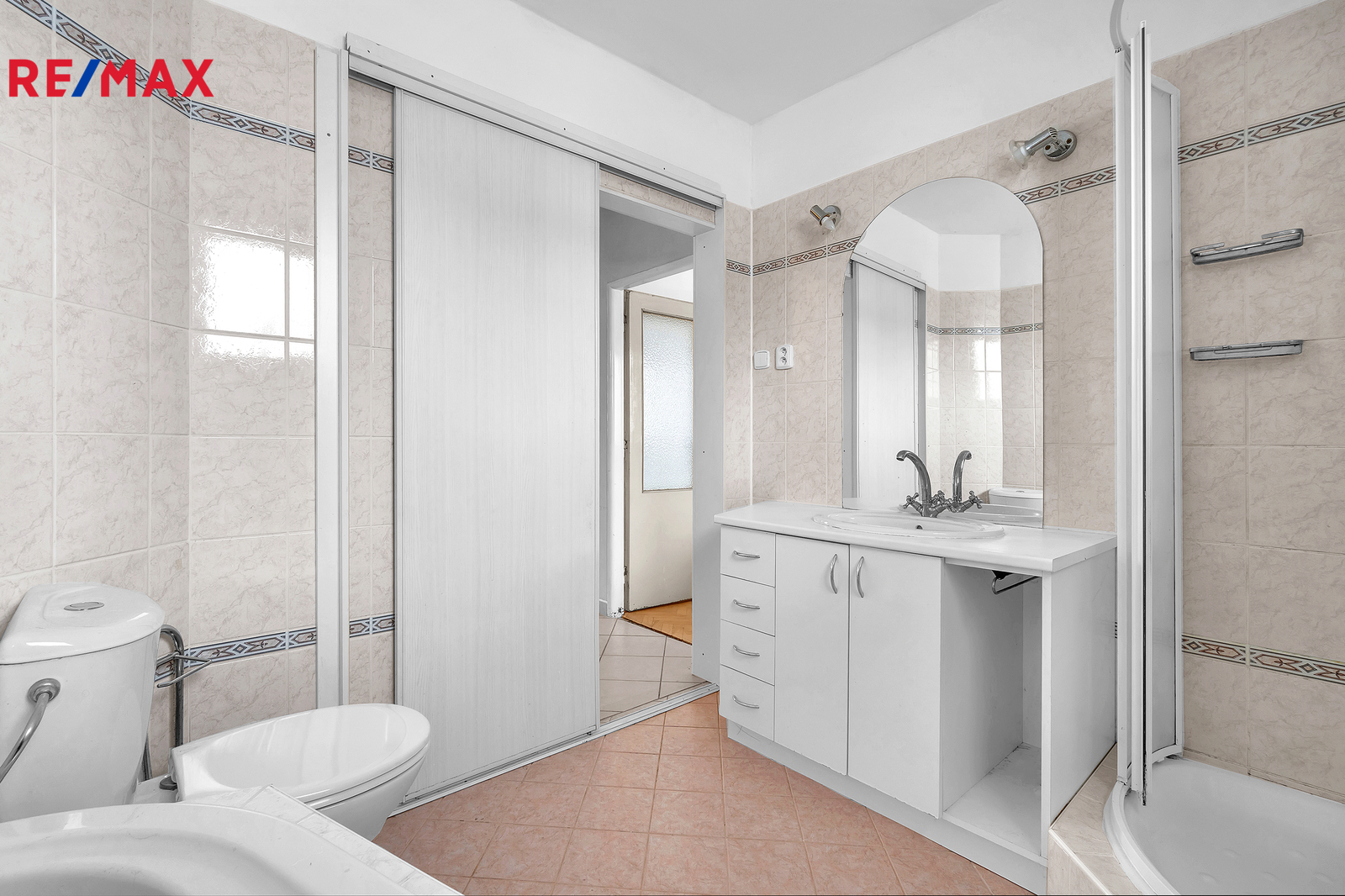 Patro - schodiště, chodba, ložnice1, ložnice2, pokoj, koupelna s vanou, sprchovým koutem a WC, lodžie