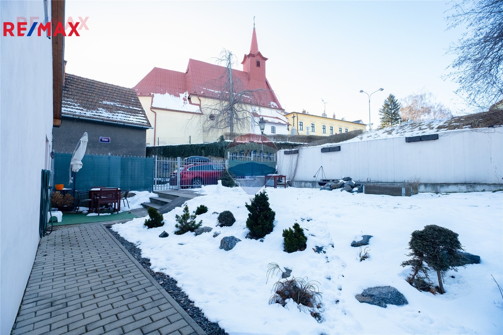 Součástí domu je členitá zahrada, která poskytuje dostatek soukromí. Na zahradě se nachází také technická místnost, vhodná pro uložení zahradní techniky.