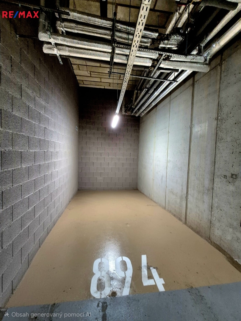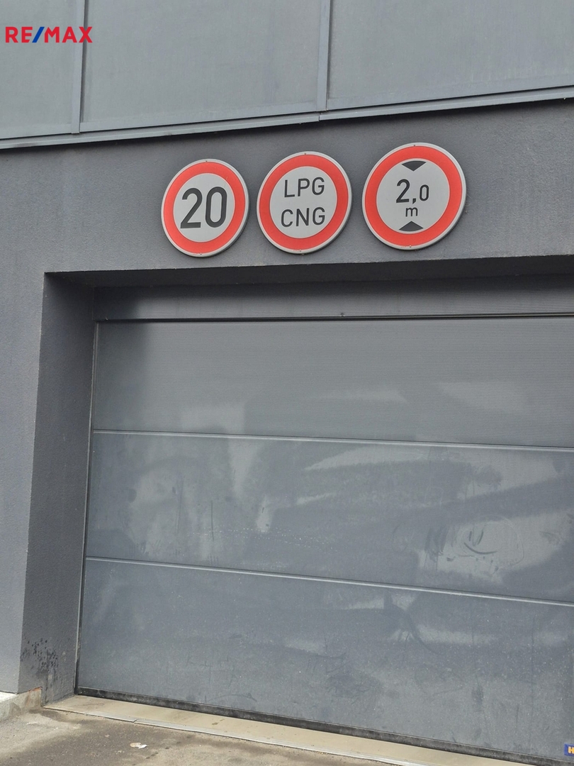 Samostatné garážové stání o velikosti 15 m2 je umístěno v 1. podzemním podlaží obytného komplexu. Vjezd do prostoru garáží umožňují vrata ovládaná čipem s vjezdovou výškou 2 m.