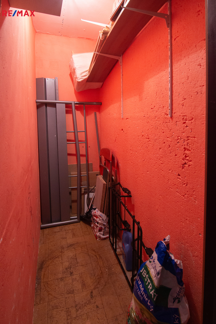 Byt disponuje samostatnou kuchyní, dvěma pokoji, umakartovým jádrem s koupelnou a odděleným WC a také komorou (šatnou) v centrální části bytu, která nabízí spoustu úložného prostoru. Příslušenství bytu pak tvoří prostorný balkón s výměrou přes 4 m2 a sklepní kóje v suterénu domu o výměře 2 m2.