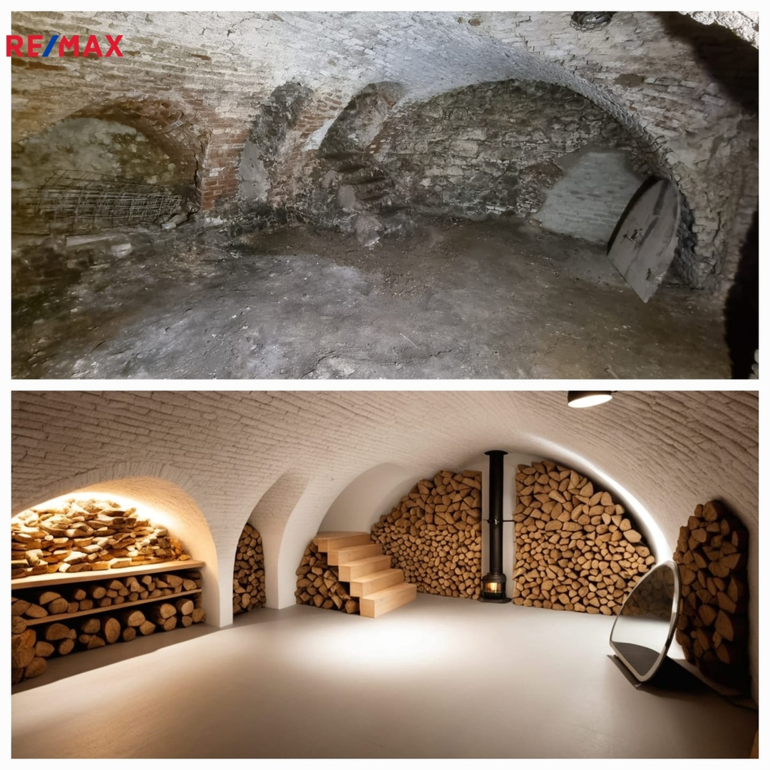 Tento unikátní podsklepený, dvoupodlažní objekt s rozlohou 242 m² nabízí vzdušný interiér, který je ideální pro komfortní rodinné bydlení. První patro a podkroví o výměře 121 m² přinášejí široké možnosti pro realizaci individuálních představ a přizpůsobení prostoru vlastním požadavkům. Sklepení lze využít k relaxaci, případně vhodné pro vinotéku, záleží už jen na Vaši fantazii.