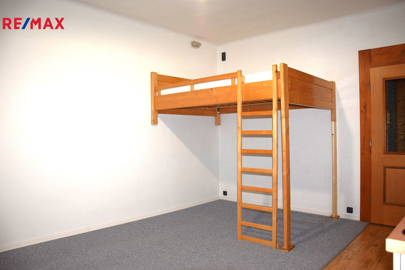 Jedná se o byt s menší předsíní, kde je však chytře vyřešen úložný prostor, z předsíně vstoupíme jak do koupelny se sprchovým koutem a WC tak do hlavního, obývacího pokoje o výměře cca 19 m2, kde je umístěna kuchyňská linka s lednicí, sporákem a mikrovlnou troubou. A dále pak dřevěné patro na spaní a skříň.
