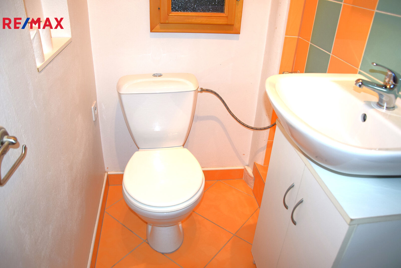 Podlahy pokrývá dlažba a v obývací místnosti položen nový koberec.