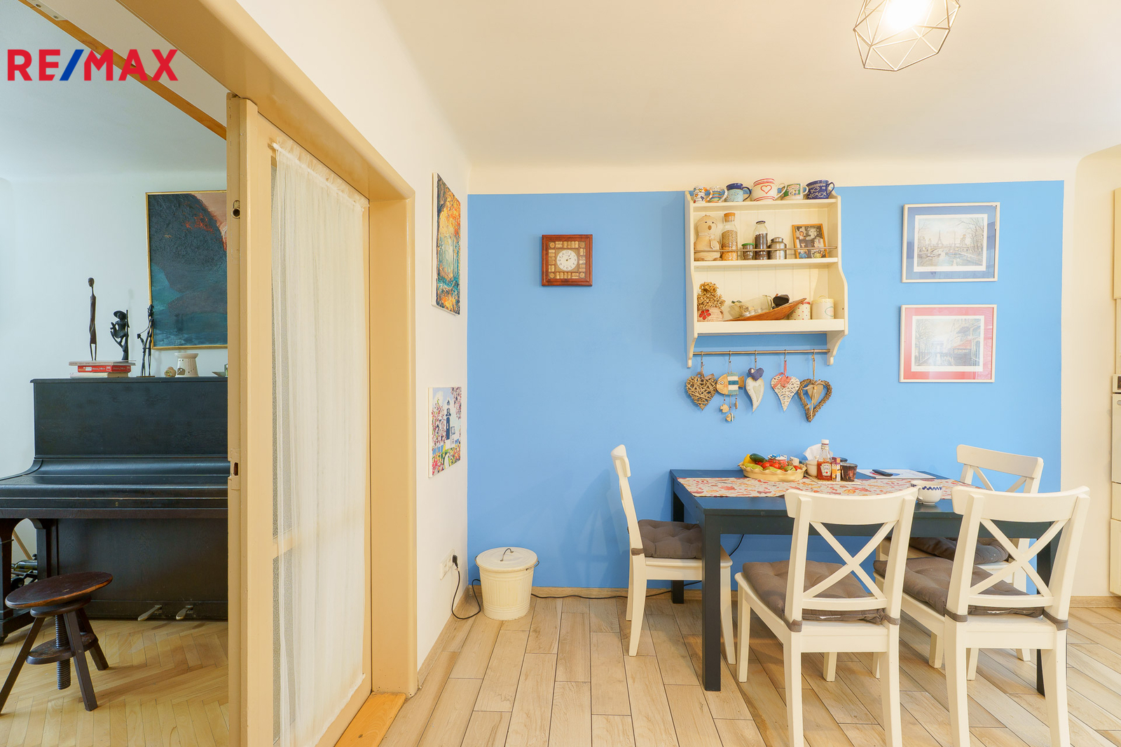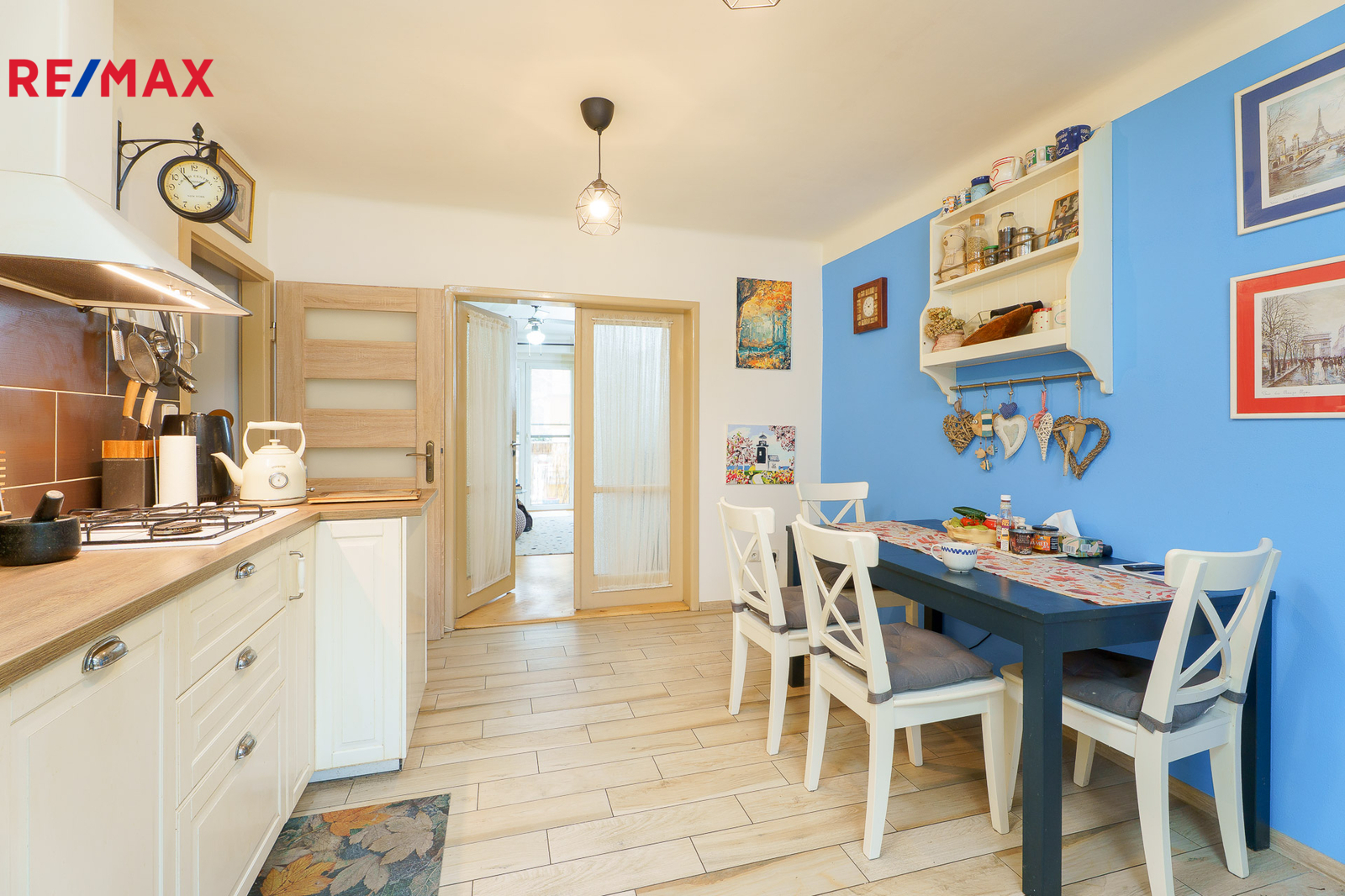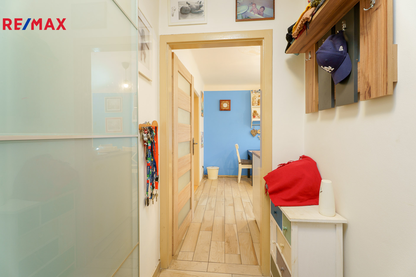 Má velkou kuchyň, obývací pokoj, ložnici, předsíň s vestavěnou skříní a koupelnu s WC. Z obývacího pokoje vede francouzské okno na nevelký, ale praktický balkon.
