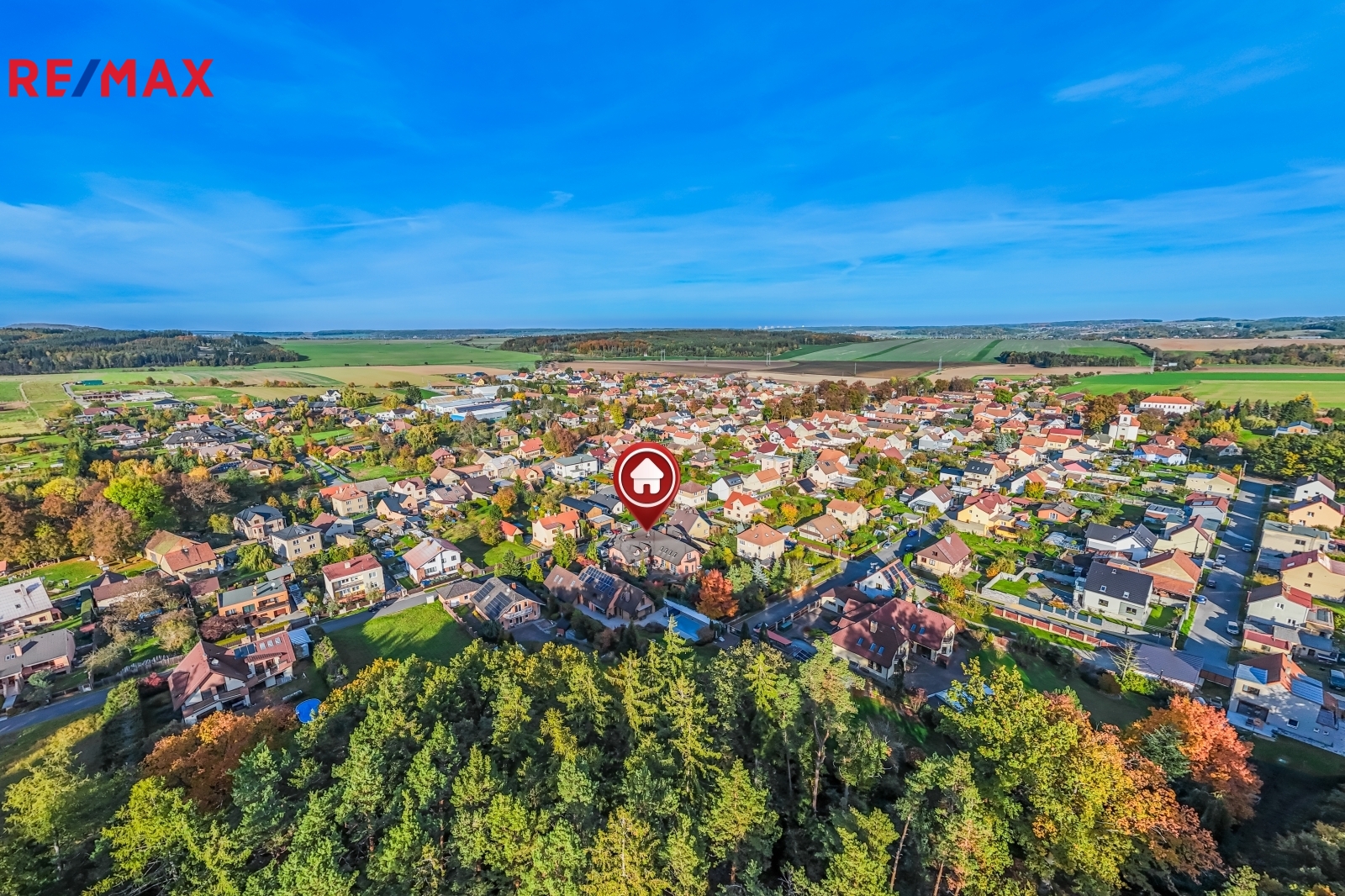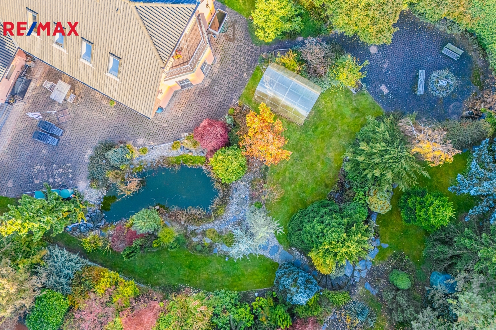 Velkoryse řešená nemovitost kolaudovaná v r. 2003 (hlavní stavba) a v r. 2006 (samostatná garáž) je umístěna na pozemku o celkové výměře 2023 m2. Velkou část pozemku tvoří profesionálně založená a již vzrostlá okrasná zahrada s jezírkem a terasami. Při stavbě byly použity velmi kvalitní materiály (Porotherm + zateplení vatou, monolitické stropní konstrukce, střešní krytina Bramac, měděné svody, foliové hydroizolace).