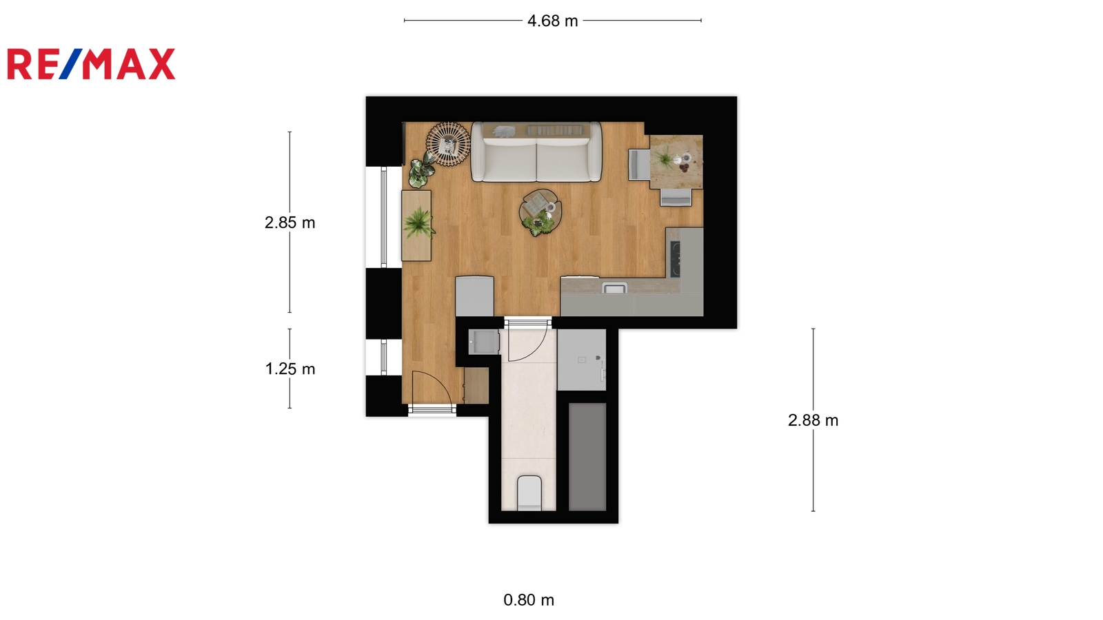 Byt se nachází ve 4. patře čtyřpatrového činžovního domu (bez výtahu). Samotná bytová jednotka právě prošla velmi pečlivou a zdařilou rekonstrukcí, společné prostory jsou postupně renovovány. Součástí bytu je moderně zařízená koupelna a kvalitní kuchyňská linka s dostatkem úložného prostoru. Dispoziční uspořádání a možnost vybavení jednotky je nejlépe patrné z vizualizace ve fotogalerii.