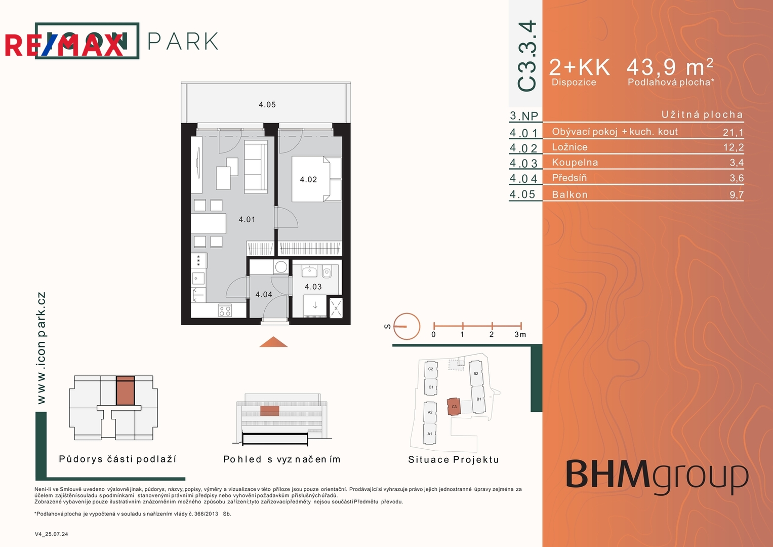 Byt se nachází v 3. NP (přízemí) s výtahem a náleží k němu vlastní venkovní stání a sklep, což v této lokalitě zajišťuje maximální komfort.