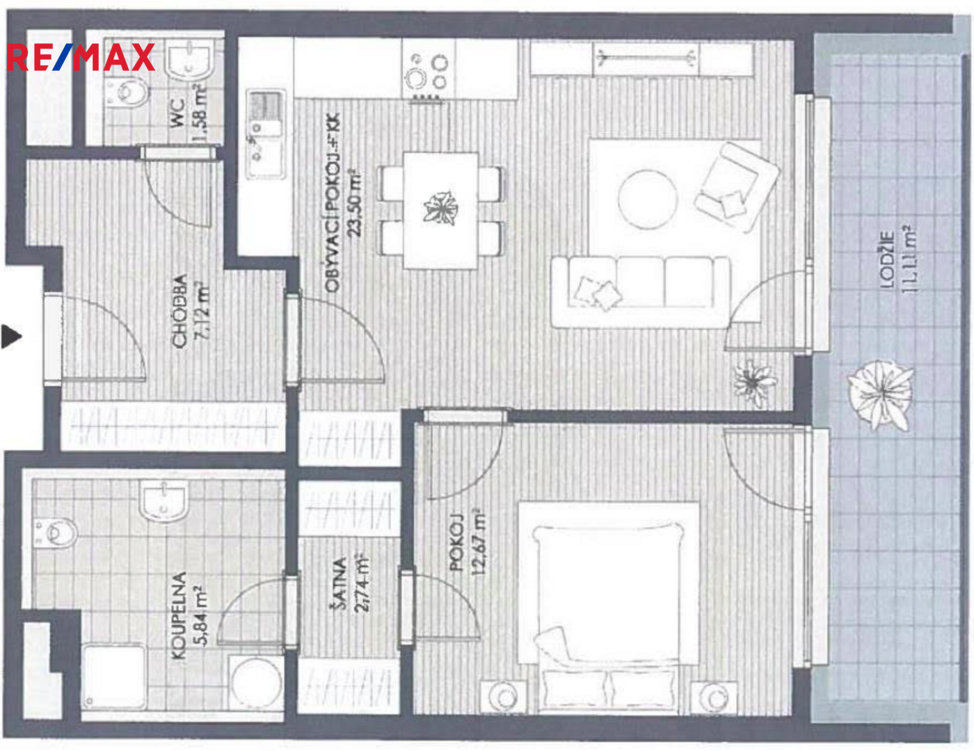 Z obývacího pokoje i ložnice je vstup na prostornou lodžii o velikosti 11 m² s krásným výhledem.