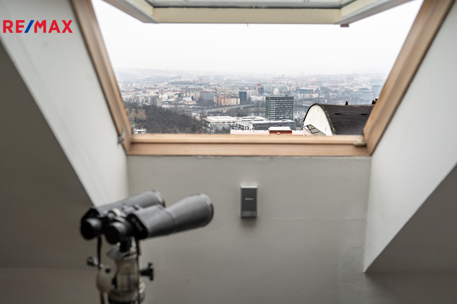 Nabízíme k prodeji exkluzivní atypický mezonetový byt o užitné ploše 145 m², umístěný v atraktivní lokalitě Praha 8 - Libeň, na ulici U Vlachovky. Tento nádherný byt se nachází v udržovaném bytovém domě s celkem pěti podlažími a klade důraz na příjemné bydlení v samotném srdci městského ruchu. Byt je situován v posledních dvou podlažích, což zaručuje privátní a klidné prostředí s nádhernými výhledy na Prahu. V bytě je elegantní kovové točité schodiště, které spojuje obě patra a dotváří jedinečný charakter této rezidence. Interiér je částečně vybaven a jeho návrh kombinuje moderní design s funkcionalitou. K dispozici je kvalitní plynový kotel pro efektivní vytápění a ohřev vody, což zajišťuje komfortní bydlení během celého roku. Velká okna, orientovanými na jih, zajišťují nejen přísun denního světla, ale i nádherný výhled na celou Prahu.
