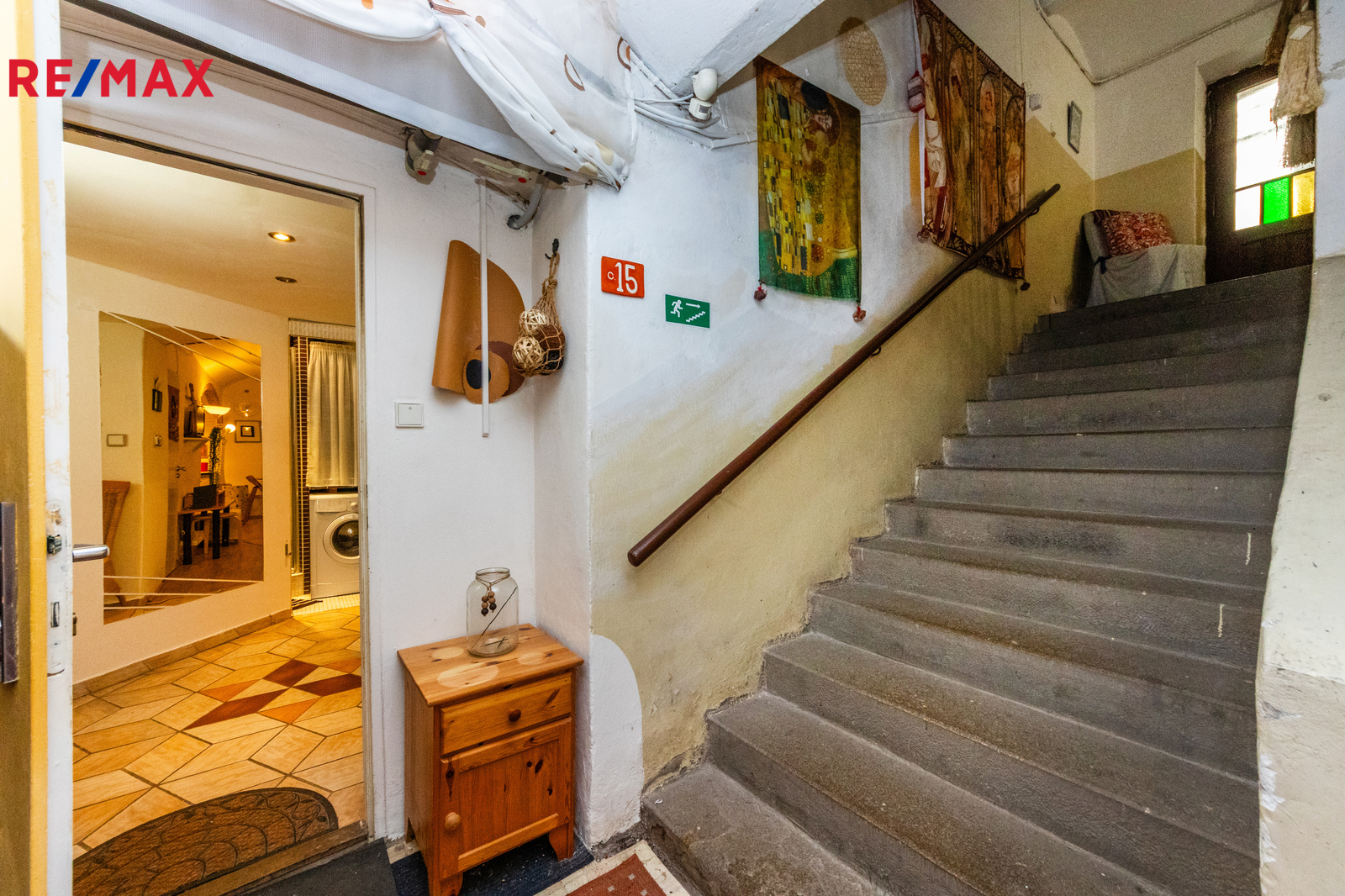 Umístění je v - 1. PP činžovního domu a je orientován do klidného vnitrobloku, který je možné využívat od jara do podzimu k posezení nebo i drobnému zahradničení (břečťan, květiny).