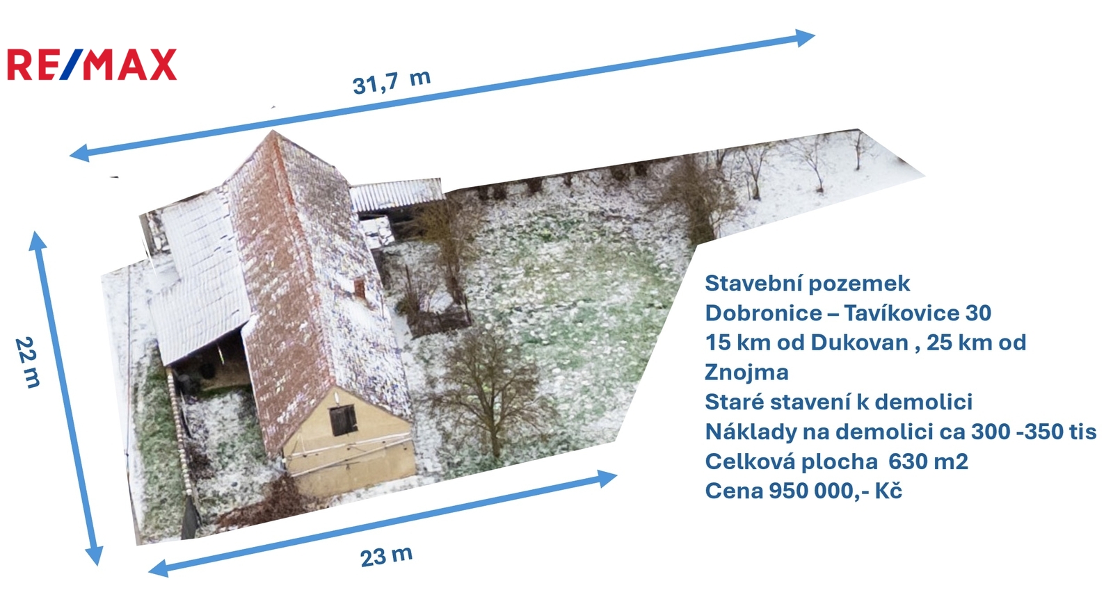 Na pozemku stojí starý dům určený k likvidaci. Odhad nákladů na zbourání a odvoz ca 300 000-350 000,- kč