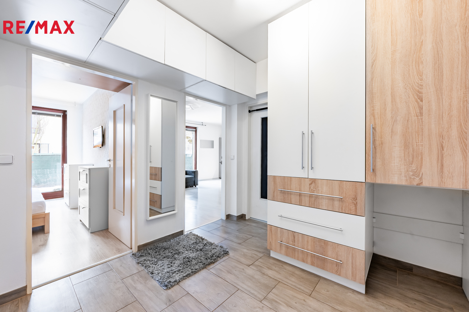 Byt disponuje prostornou vstupní chodbou s praktickou vestavěnou skříní. Dominantou bytu je obývací pokoj s kuchyňským koutem, který je vybaven indukční varnou deskou, elektrickou troubou, digestoří, lednicí a myčkou. Dále jsou zde dva samostatné pokoje, koupelna s vanou a pračkou a samostatná toaleta.