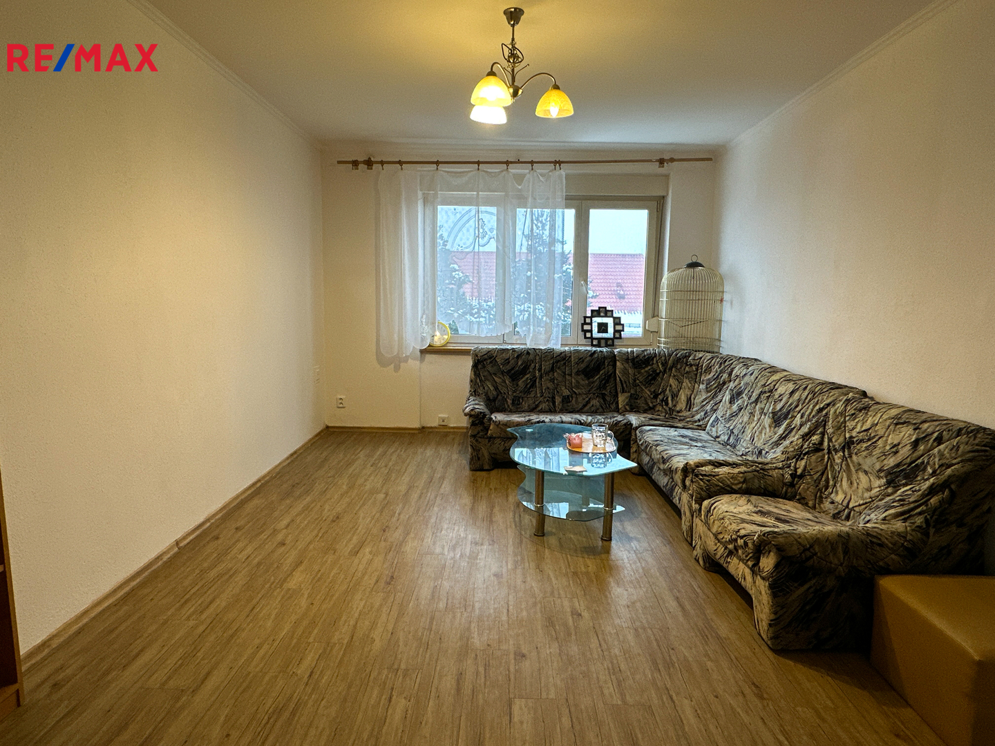 Byt má zděné jádro, plastová okna, kuchyňské spotřebiče.