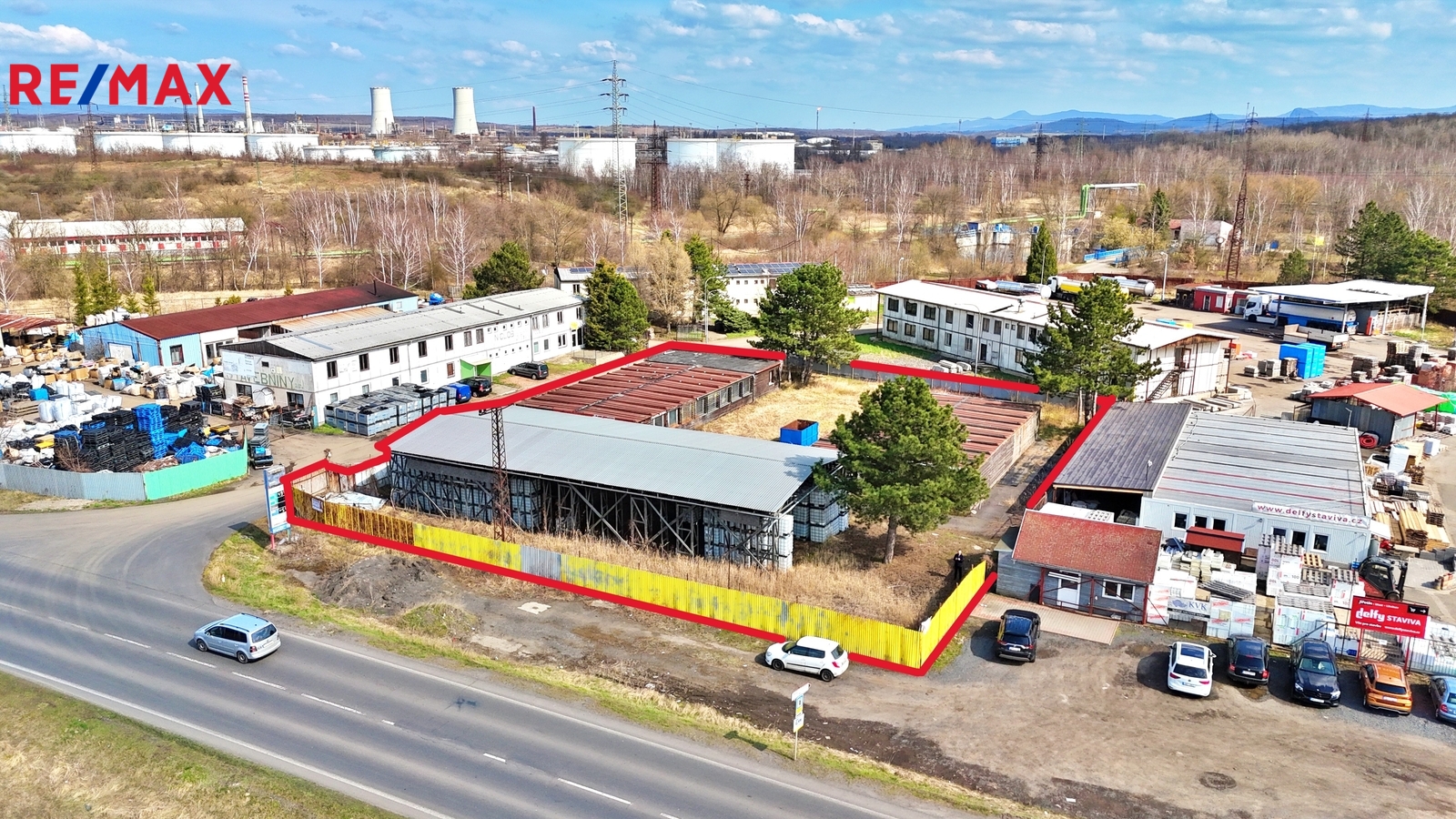 V zastoupení majitele nabízíme k prodeji pozemky pro komerční využití, o celkové rozloze 5.220 m2, se dvěma průmyslovými stavbami (objekt občanské vybavenosti 253 m2, jiná stavba 331 m2), umístěné ve vyhledávané komerční/průmyslové zóně v Dolním Jiřetíně, a to v těsné blízkosti areálu společnosti Orlen Unipetrol Záluží u Litvínova, okr. Most. Pozemky jsou v Územní plánu zapsány jako plochy komerčního využití - pro všeobecnou výrobu (viz. ÚP ve fotodokumentaci), kdy se jedná o tyto pozemky a stavby :