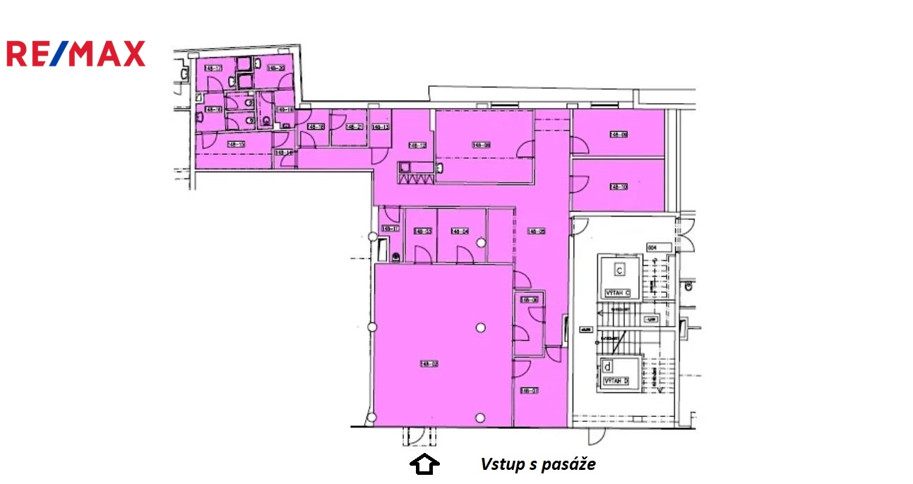 Nebytové prostory o užitné ploše 257m2 se nachází v pasáži objektu s výlohami do pasáže.