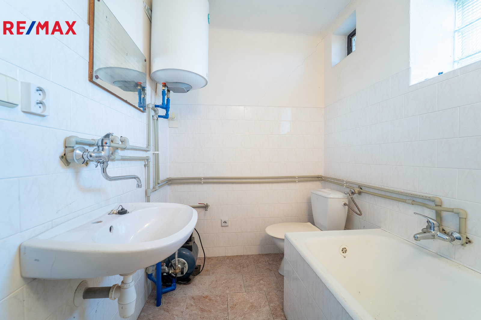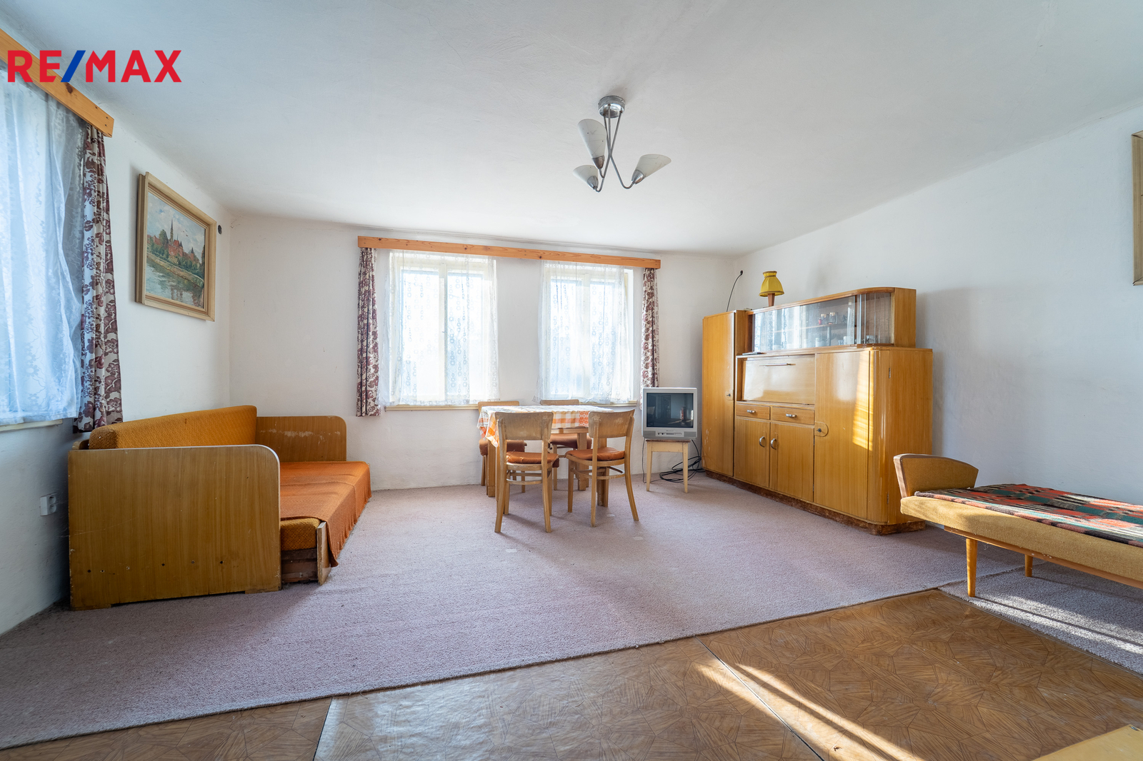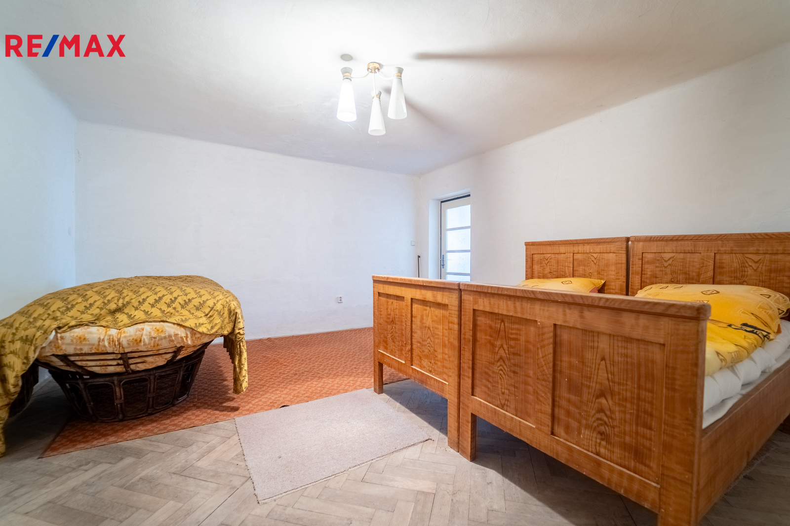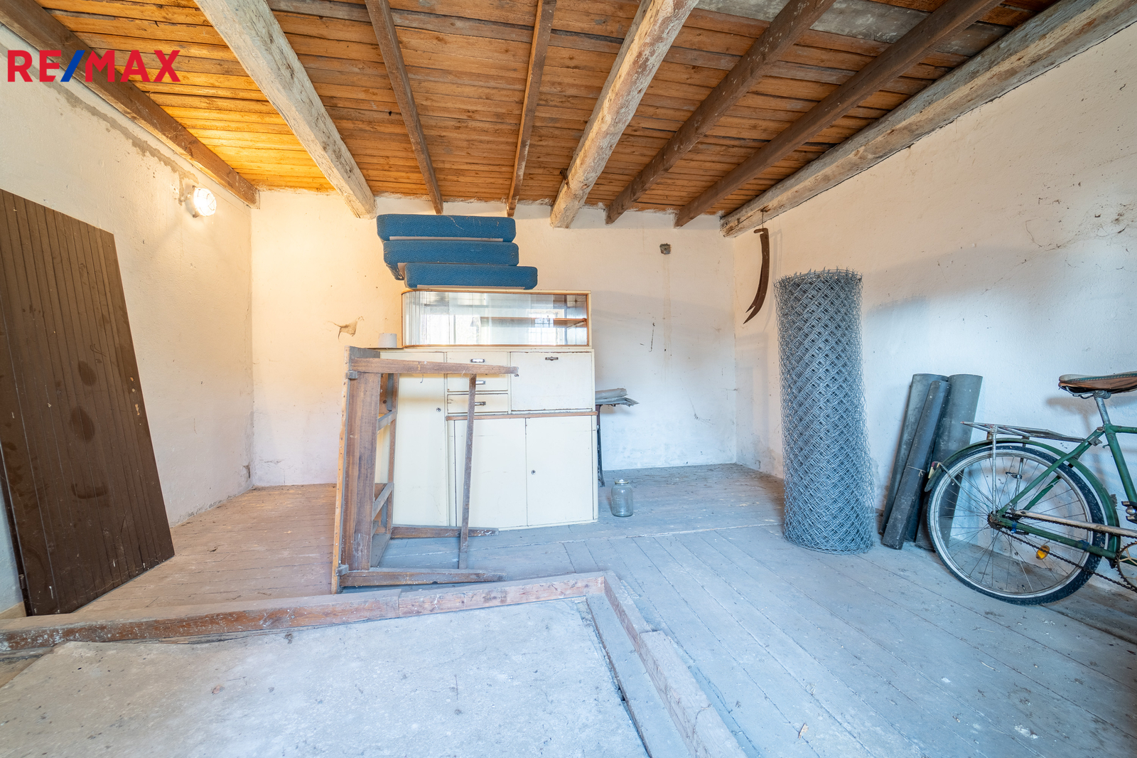Dovoluji si Vám nabídnout prodej rodinného domu s rozlehlým pozemkem v Drahu (části obce Chleby), v okrese Nymburk. Rovinatý pozemek je částečně oplocen a má celkovou rozlohu 4446 m2. Samostatně stojící dům s kůlnami je z cihlového zdiva a má sedlovou střechu s pálenými taškami. Objekt je převážně v původním, avšak udržovaném stavu . Podlahy v obytné části tvoří dlažba a beton s PVC. Dispozice: předsíň, kuchyně, koupelna s vanou a toaletou, komora a dva pokoje. Na obytnou část navazují kůlny a garáž, kde lze vybudovat další obytné místnosti. Dům je částečně podsklepen. K vytápění slouží kamna na tuhá paliva v jedné místnosti. Ohřev vody zajišťuje elektrický bojler. Dům je napojen na veřejný vodovod a tlakovou kanalizaci. Na pozemku je též k dispozici kopaná studna. Pozemek tvoří několik samostatných parcel a má veliký potenciál využití.