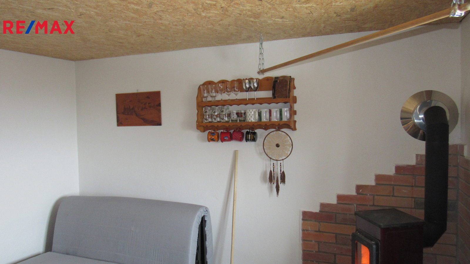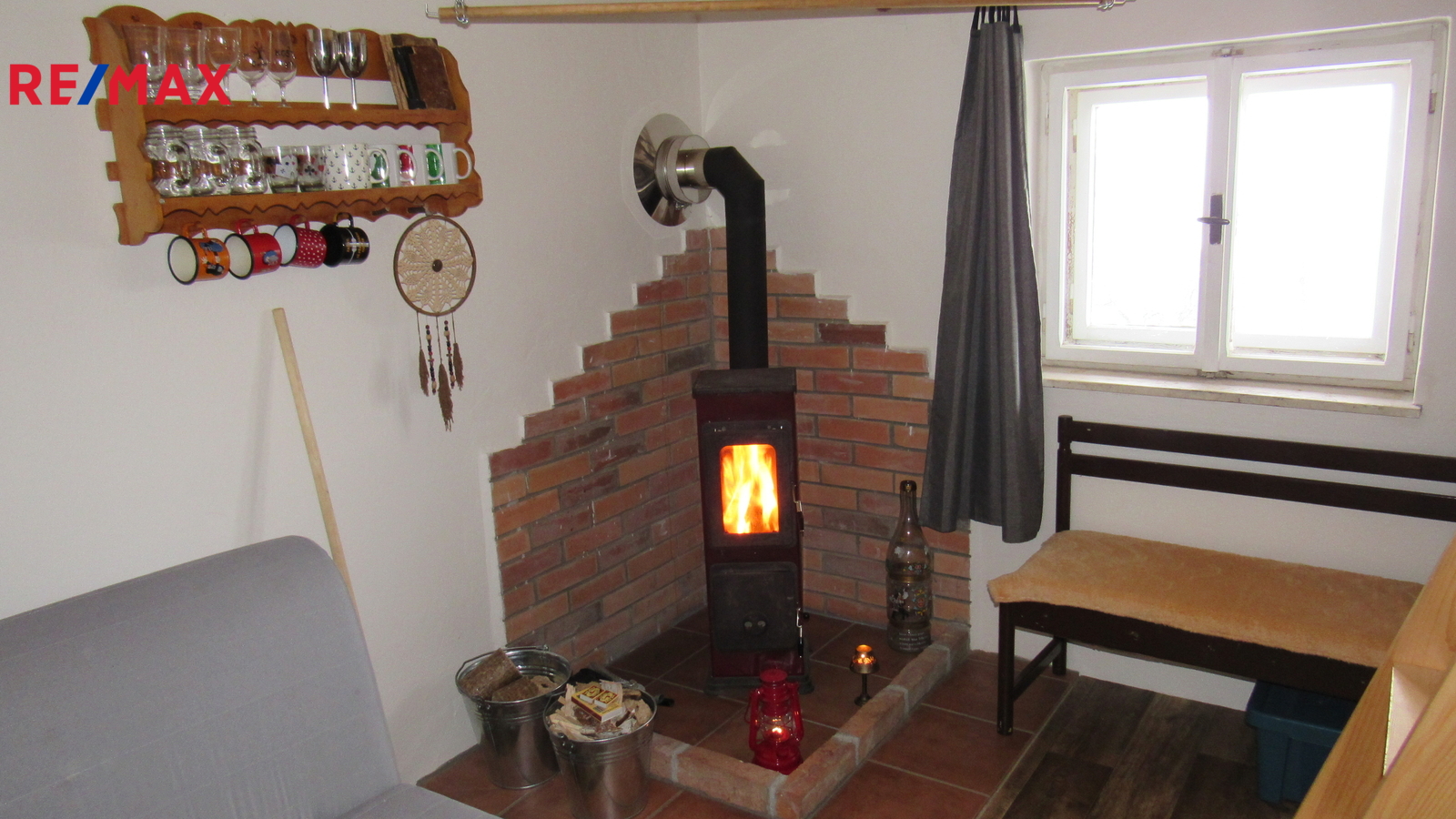 Chatka má 2 místnosti - hlavní místnost s krbovými kamny je obytná, vstupní místnost slouží k uskladnění věcí.