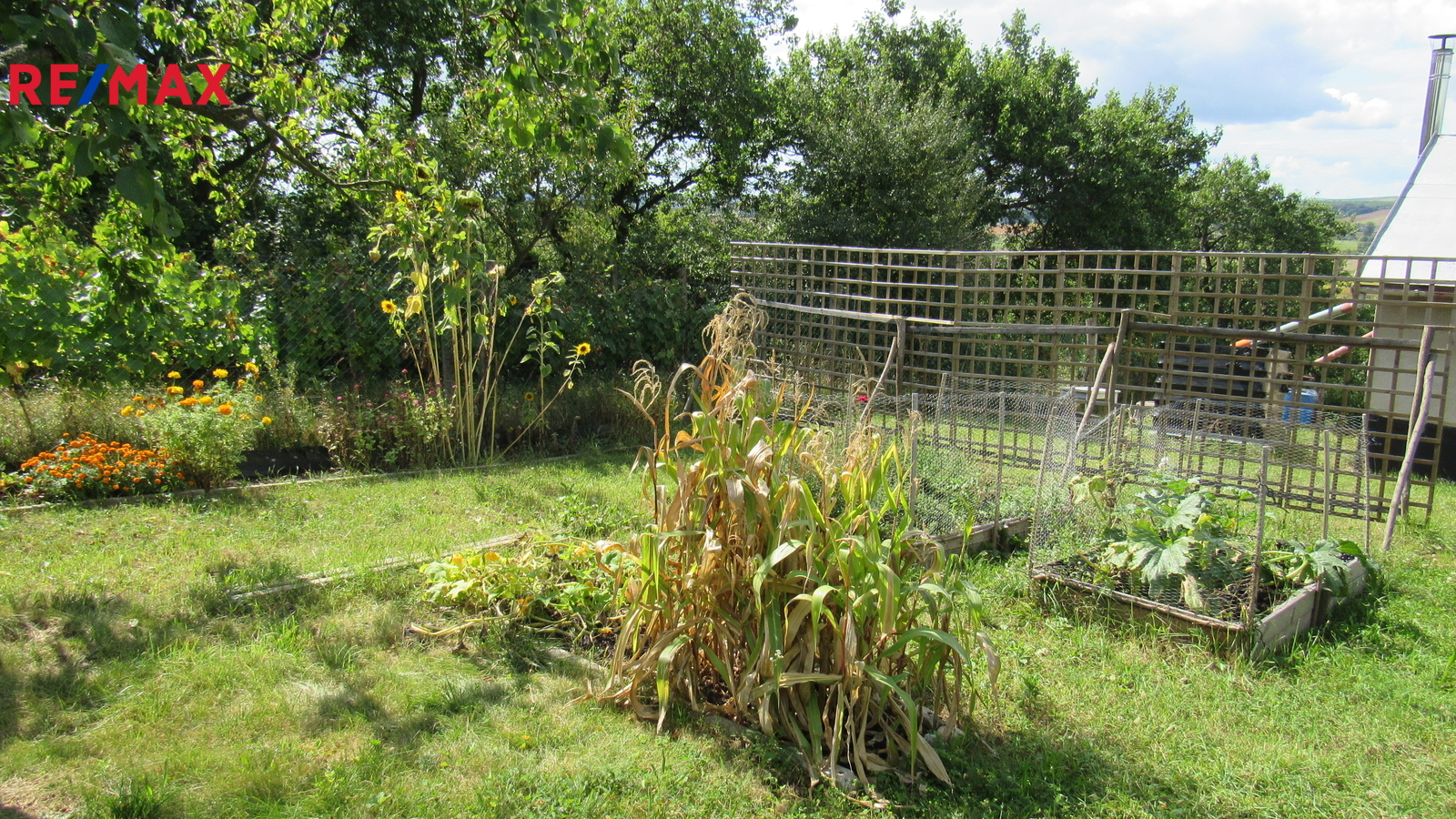 Pozemek je od příjezdové cesty rovinatý, poté svažitější, s orientací na západ a je celý oplocený se vstupní uzamykatelnou bránou.