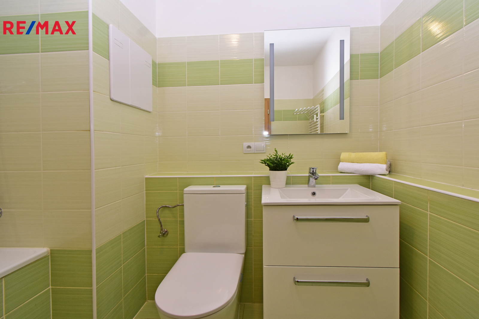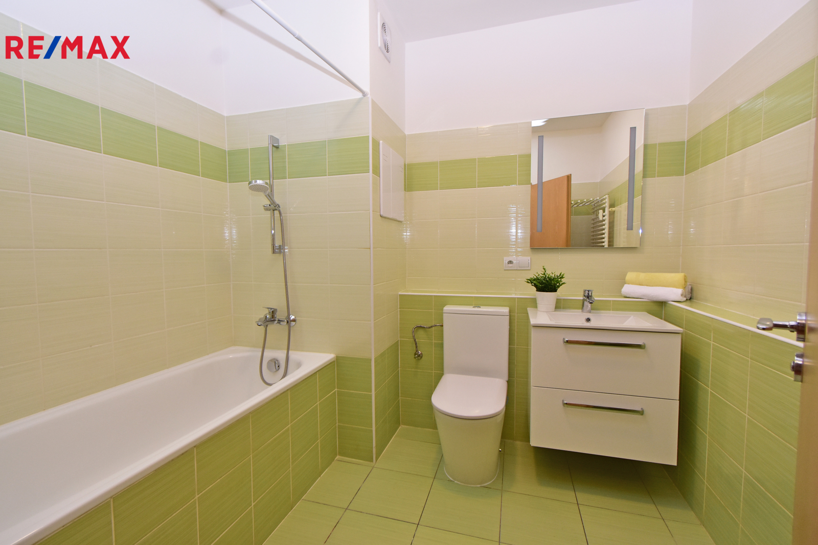 Bytová jednotka o podlahové ploše 49,76 m2 Vám nabízí prostornou vstupní chodbu, komoru, koupelnu (s vanou, umyvadlem se skříňkou, zrcadlem, toaletou a místem na pračku a sušičku) a ložnici. Dále obývací pokoj s kuchyňským koutem včetně vestavných spotřebičů (vše značky Ikea) a balkón 10 m2 s výhledem do zeleně. Nový kuchyňský kout je vybaven moderními spotřebiči: sklokeramickou varnou deskou, digestoří, elektr. troubou, mikrovlnnou troubou, myčkou, lednicí s mrazákem, dále integrovaným košem na tříděný odpad. V ložnici a obývacím pokoji nově namontované osvětlení. V koupelně nová toaleta, umyvadlo se skříňkou a zrcadlo s osvětlením. Byt je velmi světlý a slunný, nově vymalován a připraven pro nového nájemce.