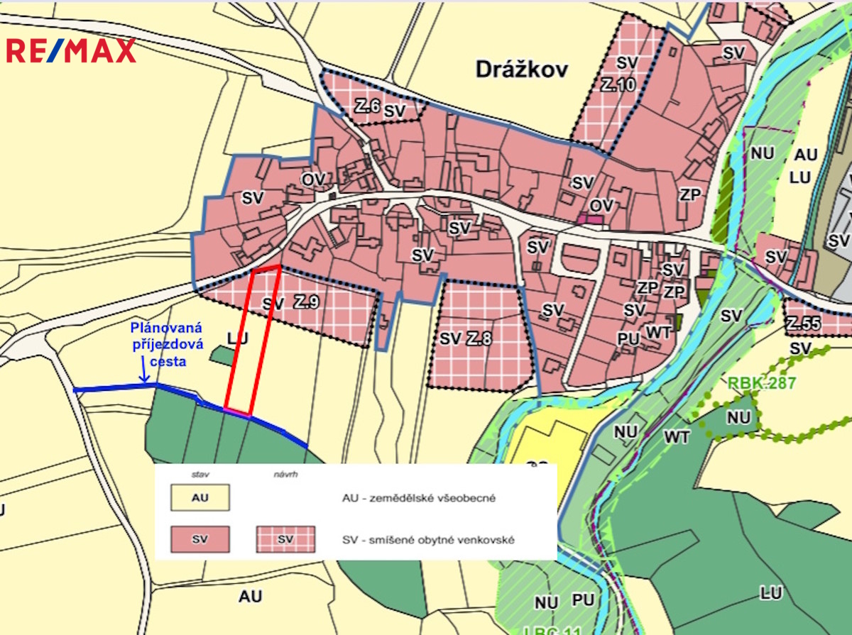Nabízíme velký pozemek o celkové výměře 4 025 m² s parcelním číslem 1610 v klidné a malebné obci Drážkov, která je součástí obce Svatý Jan, jen necelé 2 km od Kamýku nad Vltavou. Tento pozemek může být i výhodnou investiční příležitostí — z celkové výměry je 1 000 m² v severní části, teda té která přímo navazuje na stávající zástavbu, v územním plánu určena k výstavbě pro osobní bydlení nebo rekreaci.