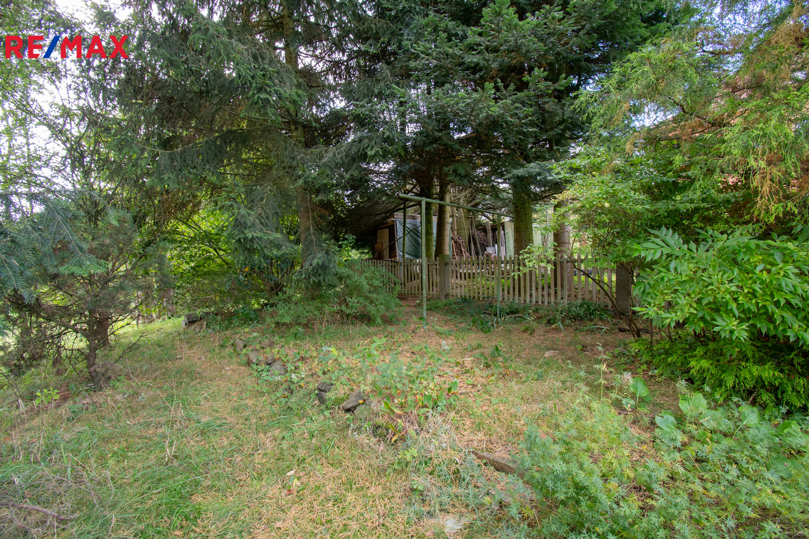 Porosty: plot ze zeravů (6ks), 1x tis, 1x jalovec, 1x smrk, 2x rododendron, 8x azalka, 1x buxus, 4x šeřík, 1x škumpa, 1x dřišťál.