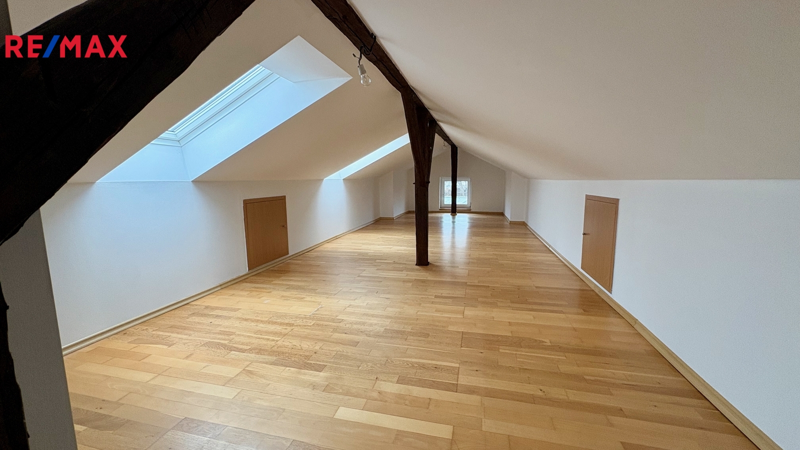 Nabízíme k pronájmu prostorný, částečně vybavený mezonetový podkrovní byt o dispozici 4+kk a celkové výměře 200 m², nacházející se v Pelhřimově na ulici Nádražní.