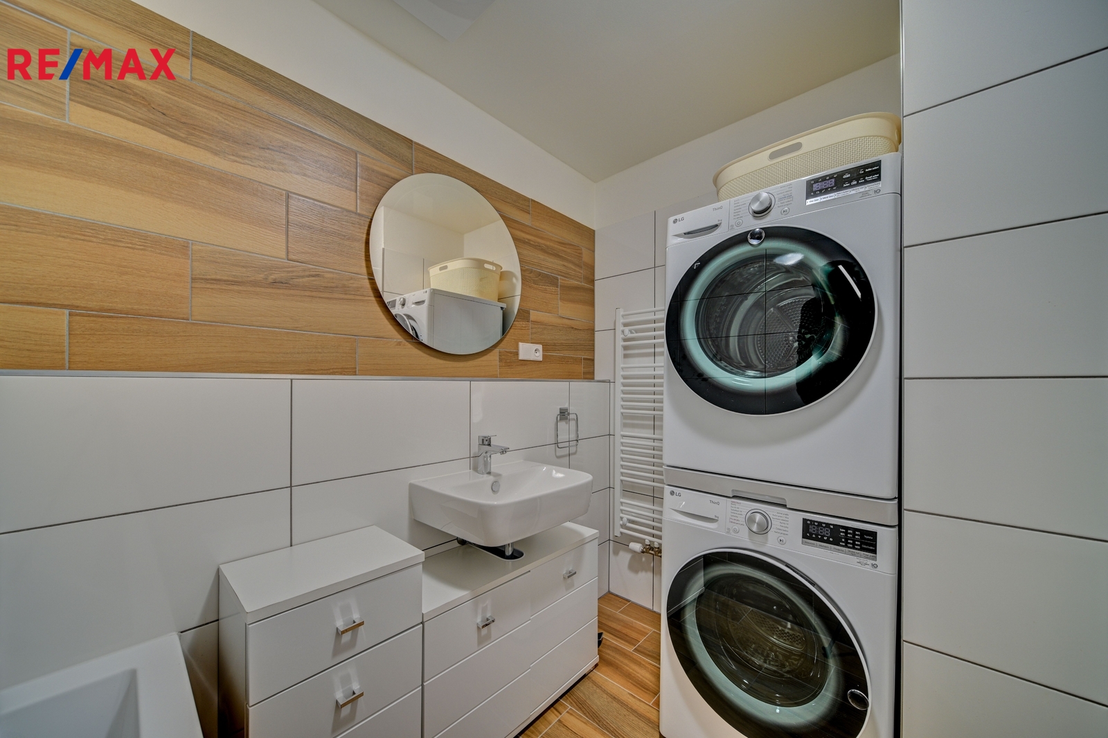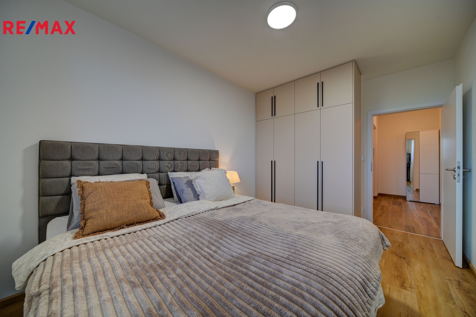 Byt dále nabízí dva samostatné neprůchozí pokoje o výměrách 11,31 m² a 11,46 m², koupelnu, samostatné WC, chodbu a technickou místnost. Samozřejmostí jsou vestavěné skříně, pračka, sušička a další prvky nadstandardního vybavení, které zajišťují maximální komfort bydlení.