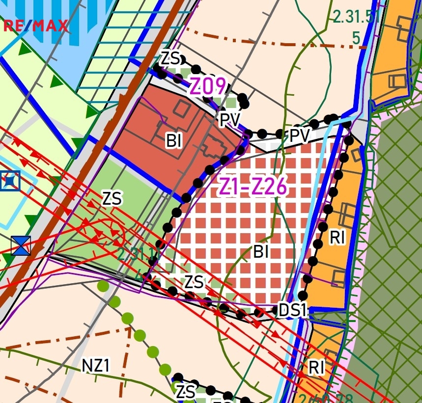 Velmi malá část pozemku patří do plochy ZS – zeleň soukromá a vyhrazená.
