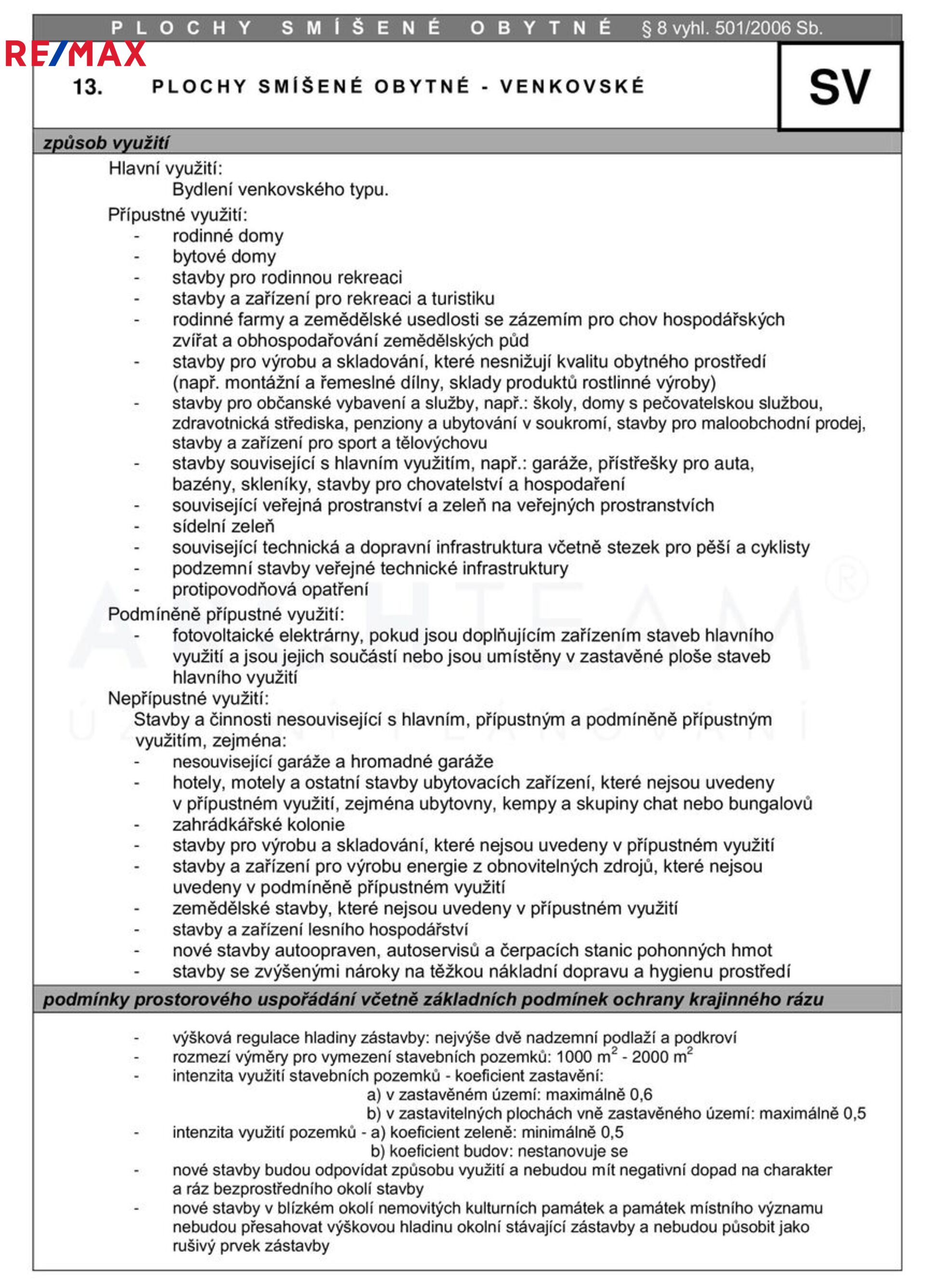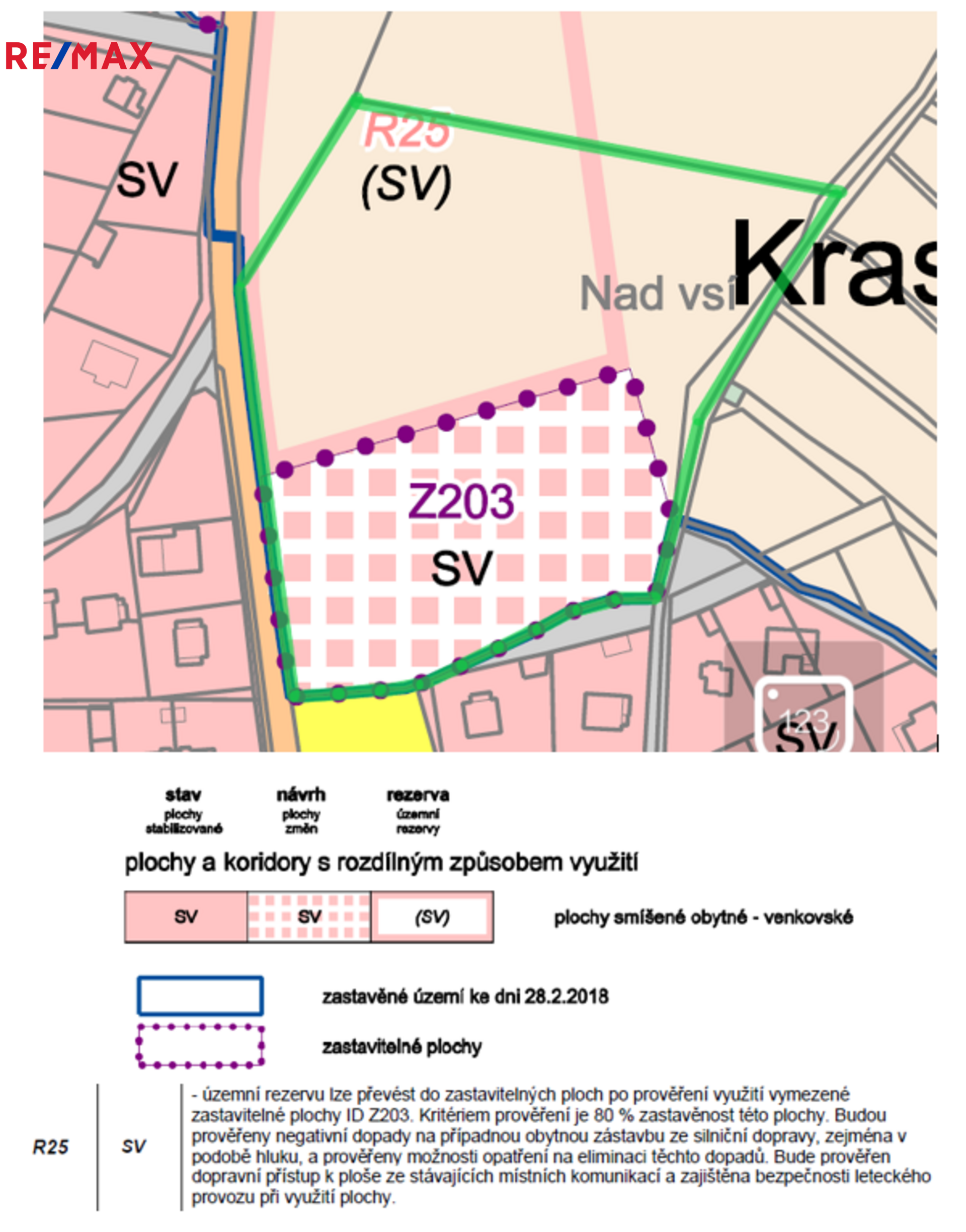 Využití dle územního plánu SV (Z203) – Plochy smíšené obytné – venkovské.