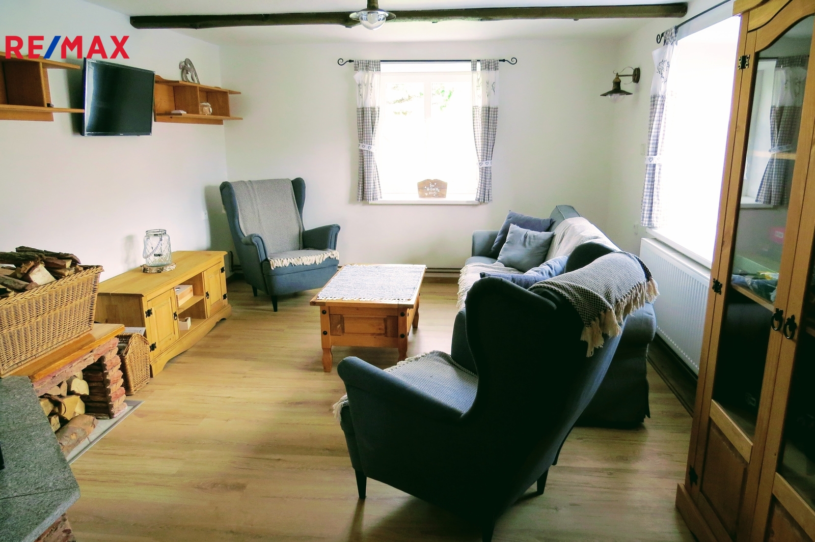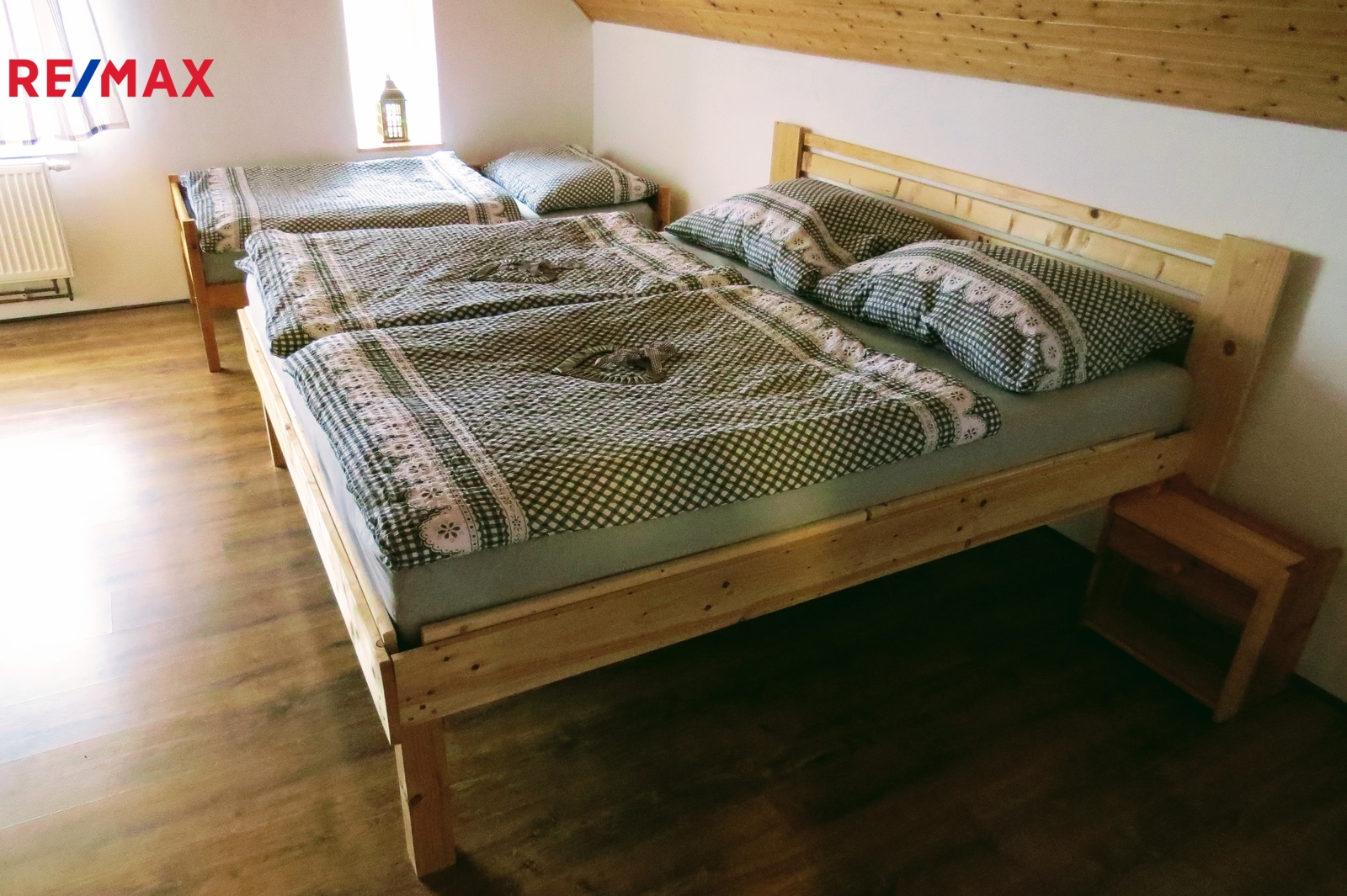 V přízemí domu se nachází chodba s odkládacím prostorem, technická místnost s plynovým kotlem, obývací pokoj, dále samostatná kuchyně se vstupem do koupelny a toalety. Po dřevěných schodech se dostaneme do prvního patra, kde máme tři prostorné ložnice v chalupářském dřevěném stylu a samostatné WC s umyvadlem. Dům je napojen na vodovod, kanalizaci, zároveň i na plyn. Podél celé chalupy je zastřešená terasa s venkovní kuchyní a zabudovaným grilem. Součástí udržované rovinaté zahrady je dětský domeček a dřevěná šopa. Obec Stará Červená Voda je výchozím bodem nejen pro veškerou turistiku, ale hlavně pro cyklistiku, okolí je plné cyklostezek, kdy nejznámější jsou Rychlebské stezky. Pro milovníky koupání oblast nabízí několik zatopených lomů, jež jsou součástí cyklostezek a nabízí krásnou průzračnou vodu. Obec disponuje dostatečnou občanskou vybaveností, škola, školka, obecní úřad, kulturní dům, obchod s potravinami, restaurace, penzion, domácí mléčná farma... Do lázeňského města Jeseníku se dostaneme autem do 10 minut. Byť momentálně nemovitost slouží jako chalupa a současní majitelé ji nabízí ke krátkodobému pronájmu, může být vhodná i pro rodiny žijící ve velkoměstě , hledající klid, krásu přírody a hor , ale zároveň zázemí obce. Pro více informací nás neváhejte kontaktovat.