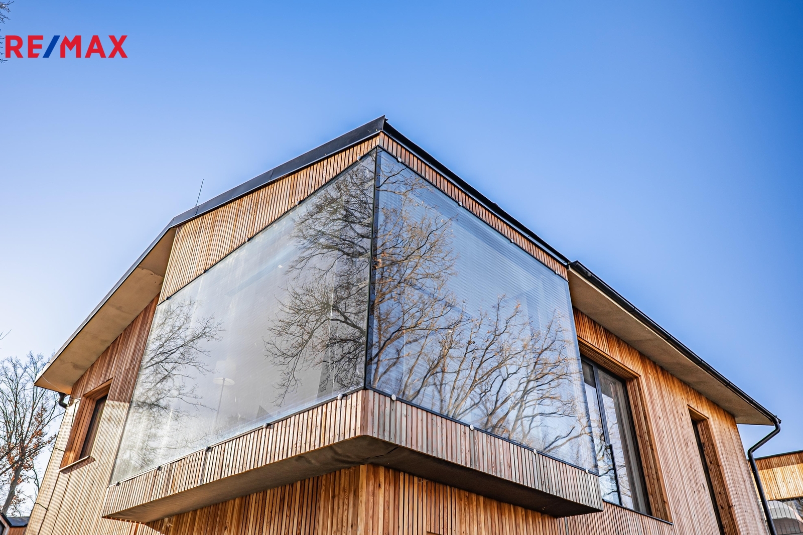 Objekt je postaven z kvalitních materiálů – železobetonové základy a stropy, obvodové zdivo z Ytongu se zateplením minerální vatou a provětrávaná fasáda z evropského modřínu. Vytápění i ohřev vody zajišťuje tepelné čerpadlo s podlahovým vytápěním, doplněné o moderní systémy rekuperace, stropního chlazení a inteligentního řízení domácnosti. Samozřejmostí je kompletní Wi-Fi pokrytí objektu pomocí systému UNIFI a chytré ovládání osvětlení Philips Hue.