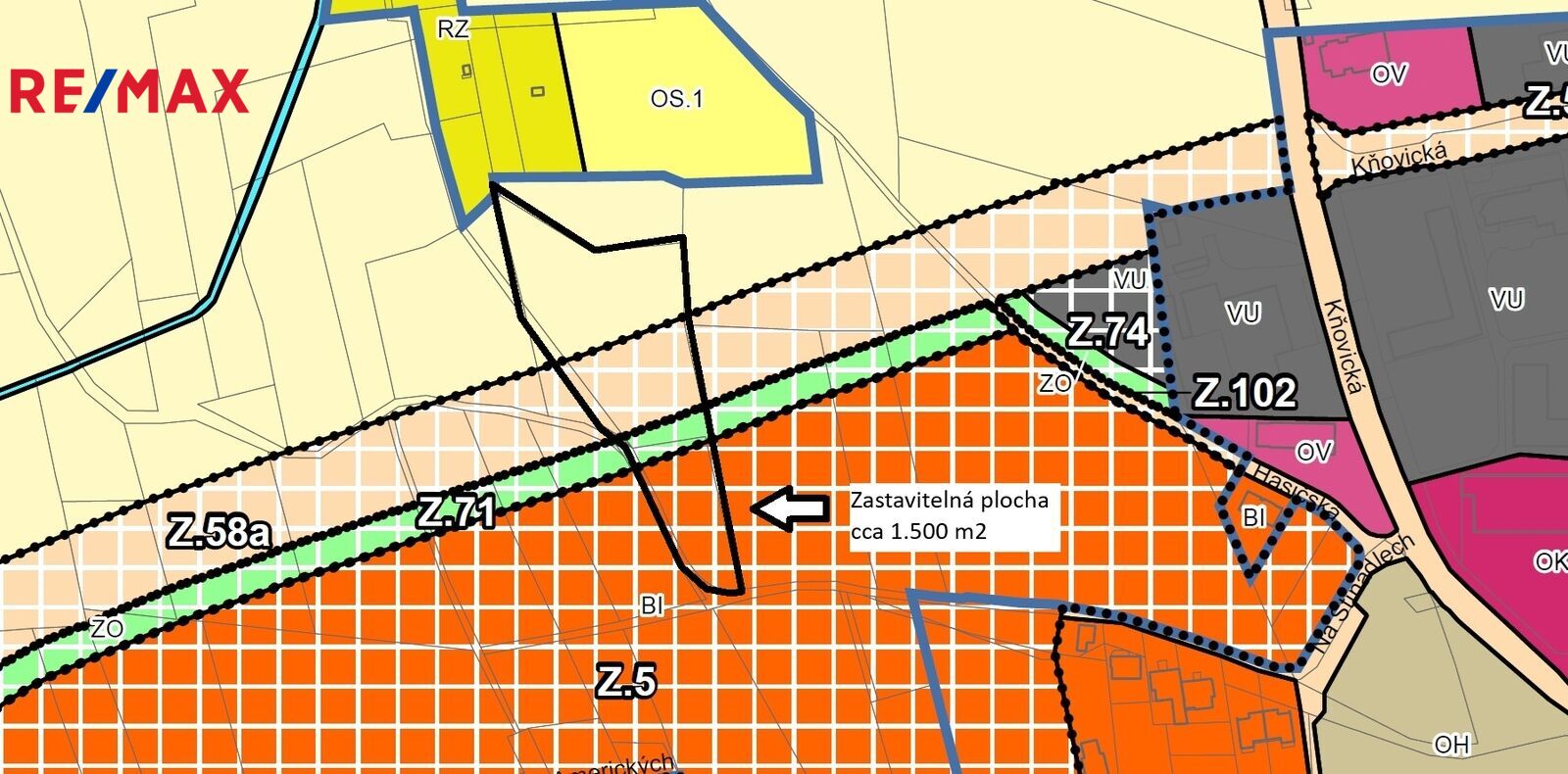 Část pozemku o velikosti cca 1.500 m2 (nyní využívaná jako zahrada), je dle nového územního plánu zastavitelná stavbou pro trvalé bydlení. Konkrétní parametry pro stavbu budou známé po zpracování územní studie. Vzhledem k tomu, že nejzazší termín pro zpracování územní studie je 31.10.2028, je tento pozemek vhodný pro zájemce, který nepotřebuje začít stavět dům ihned. Teoreticky je možné, že na této zastavitelné části bude možné postavit i domy dva. Předpokládá se dům v podobném stylu jako jsou novostavby v okolí, tedy maximálně dvě podlaží a sedlová střecha.