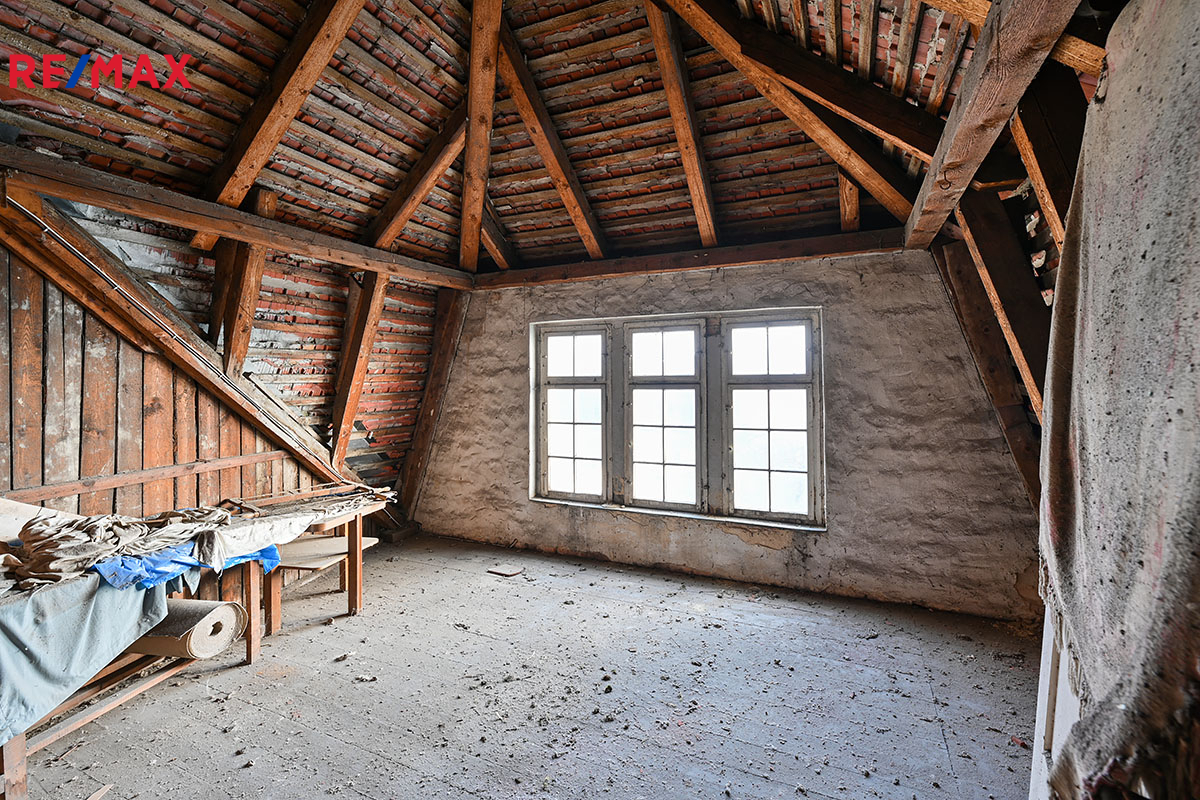 • Rozlehlá půda s možností vybudování podkrovního bytu (cca 147 m2 )