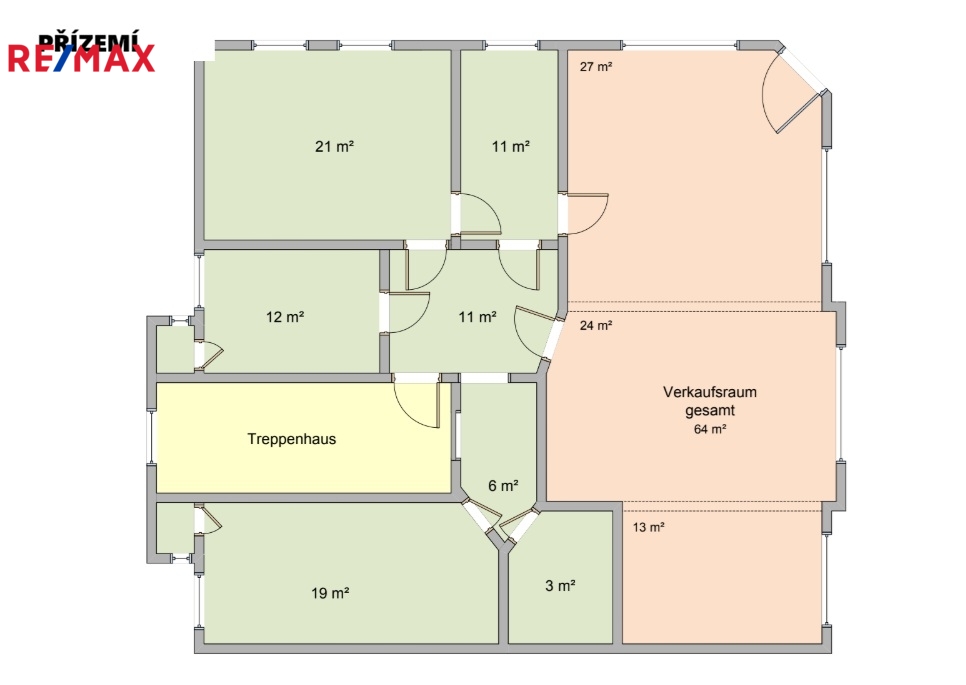 • Přízemí – atraktivní komerční prostor s výlohami do ulice ( cca 147 m2 )
