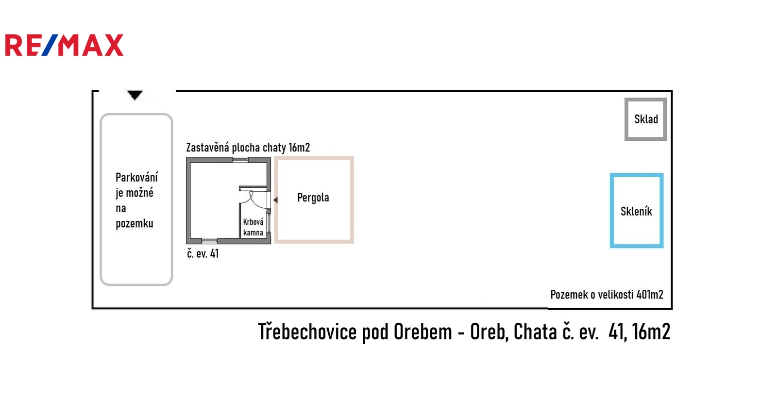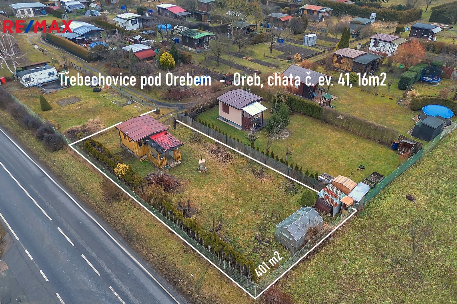Výhradně nabízíme k prodeji chatu o zastavěné ploše 16 m² se zahradou o celkové výměře 401 m², nacházející se v klidné chatové oblasti Třebechovice pod Orebem – Oreb.