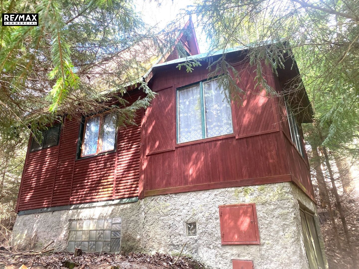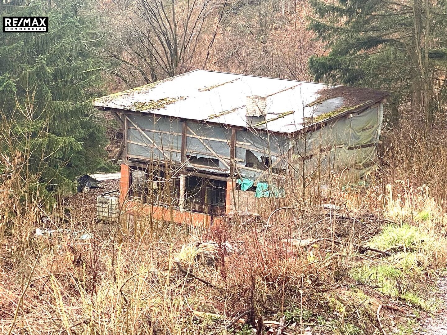 K tomu patří další samostatný objekt - chata o dvou podlažích, kde v přízemí je zvažováno další zázemí - sklepy, garáže a v patře jsou dvě samostatné místnosti, které by sloužily jako klubovna. Tento objekt je již postavený a určený k rekonstrukci.