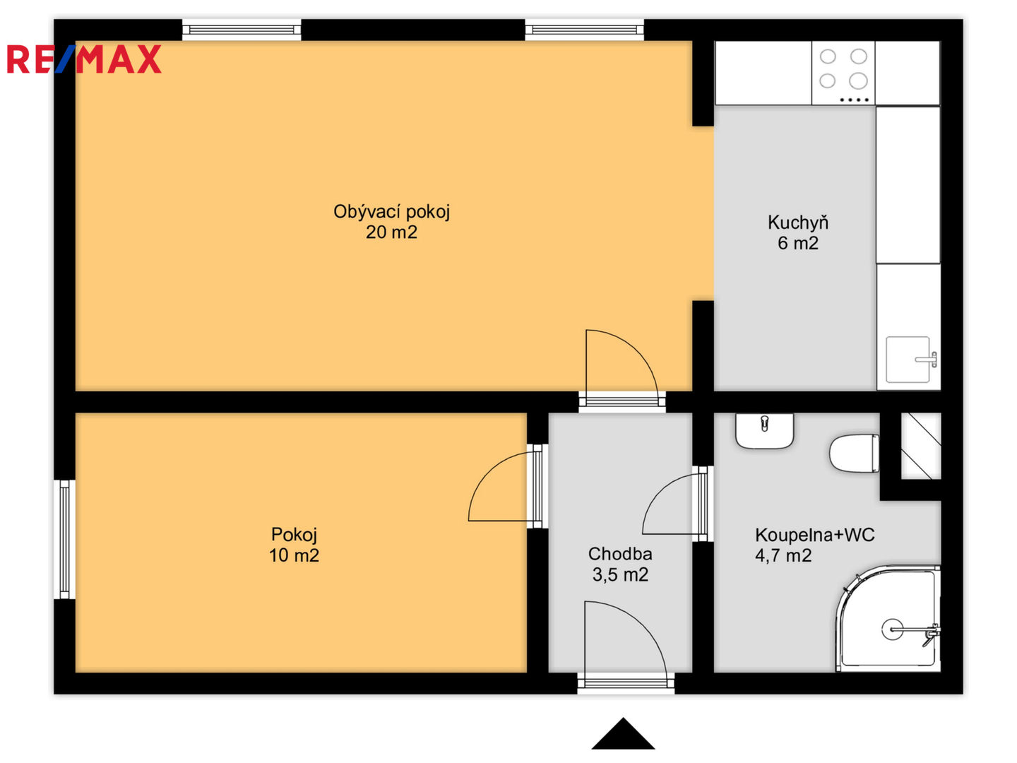 Byt o dispozici 2 + kk a podlahové ploše 44 m2 je umístěn ve 2. nadzemním podlaží cihlového domu bez výtahu.