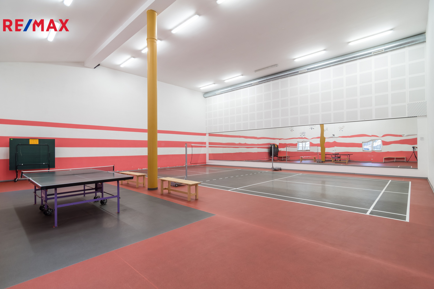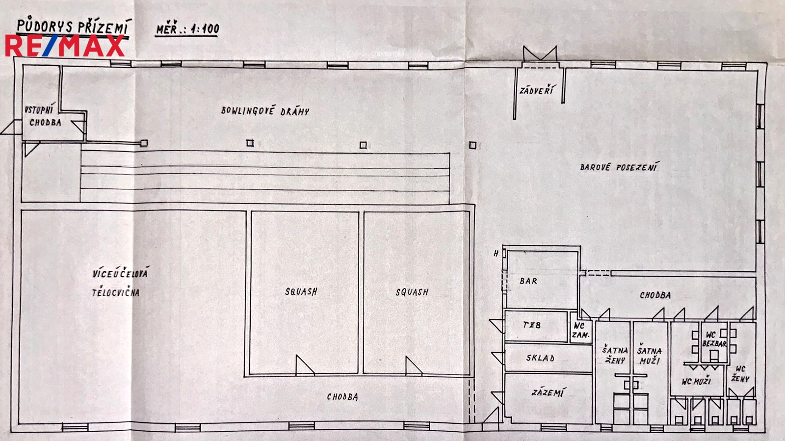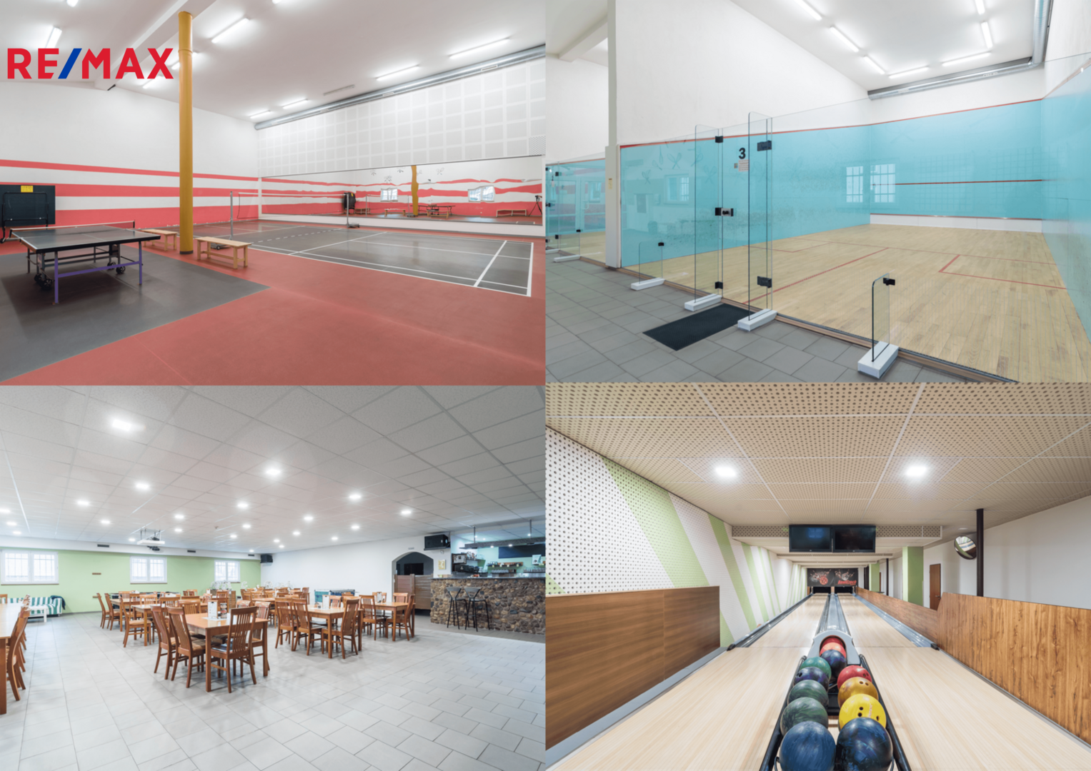 Jedná se o samostatně stojící, zateplenou budovu zkolaudovanou v roce 2012, která je ve výborném technickém stavu. Celková užitná plocha činí cca 940 m². Aktuálně je objekt využíván jako zavedené sportovní centrum (squash, badminton, bowling, ping-pong,) s kompletním zázemím, barem, posezením a sociálním zařízením včetně šaten se sprchami. Budova je světlá, prostorná, s vysokými stropy a nabízí variabilní možnosti vnitřního uspořádání.