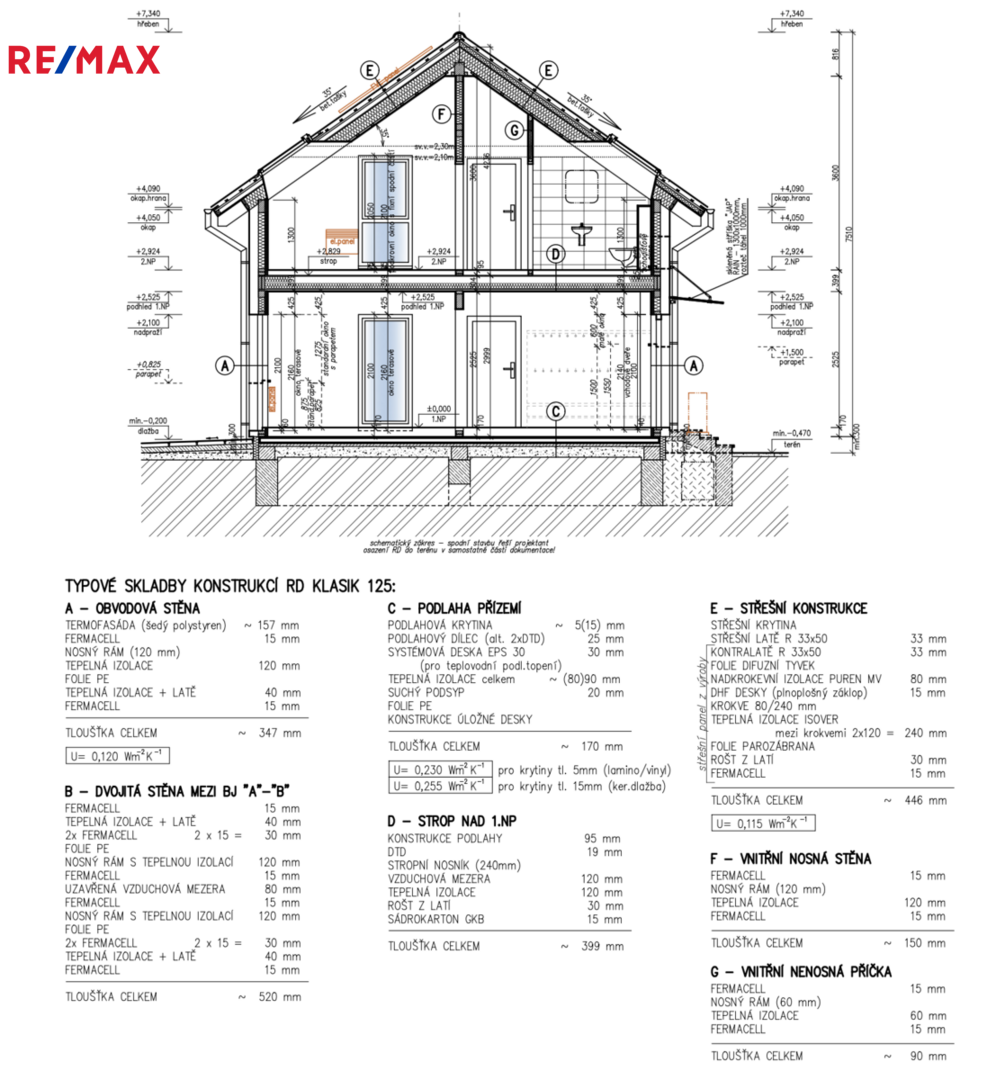 Zateplovací systém je ze stabilizovaného EPS polystyrenu fasádního šedého tl. 150 mm. Dešťové vody ze zpevněných ploch a RD jsou svedeny do vsaku s předřazenou akumulací a rozstřikem na pozemku.